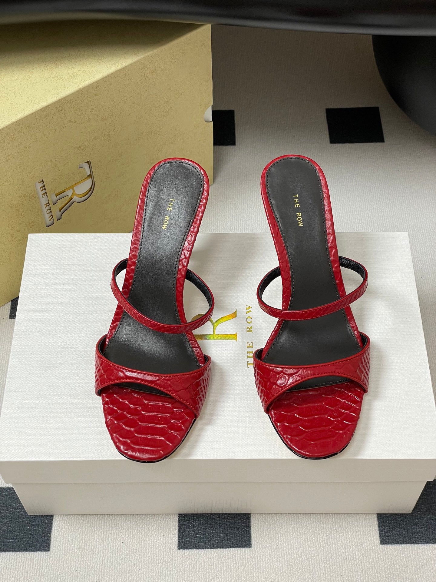 The Row 25S Strap High Heel Mule Sandals 85mm Red Snake Pattern Cowhide 286203