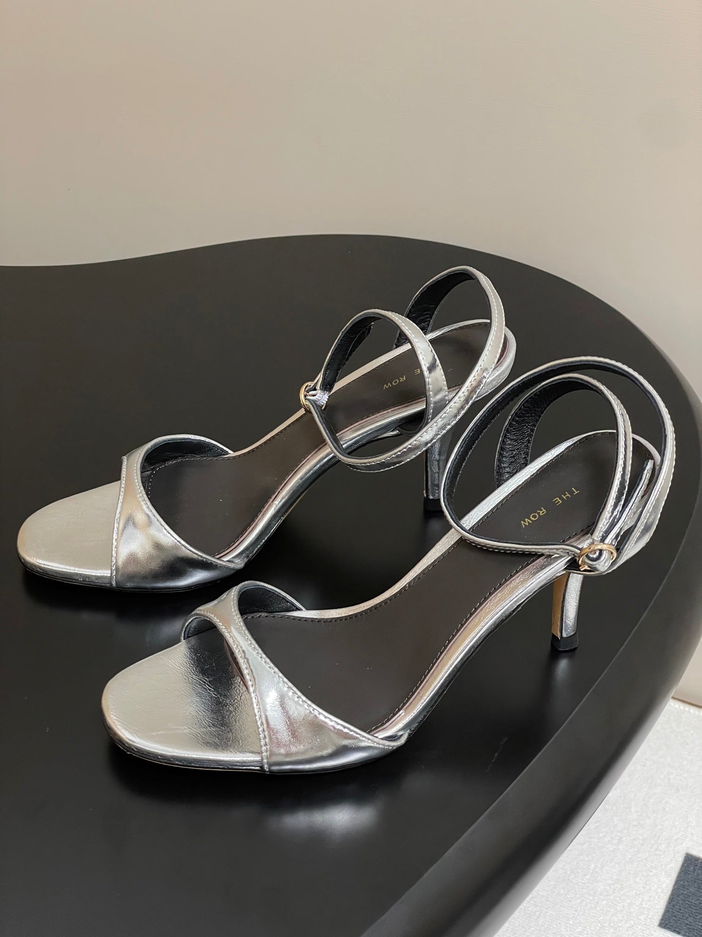The Row 25S Strap High Heel Sandals 85mm Black Mix Gold Metallic Cowhide 286193