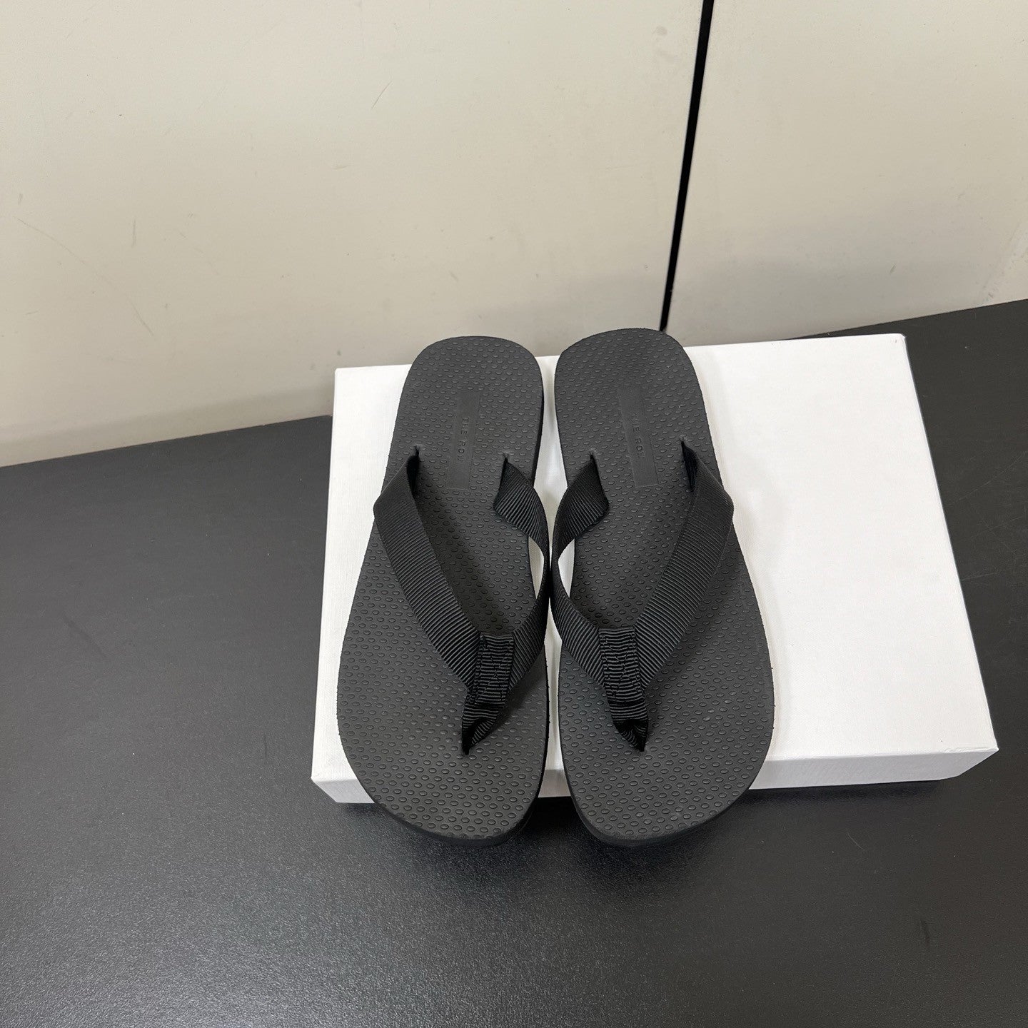 The Row Dune Flatform Thong Sandal In Black Rubber And Black Canvas 340028