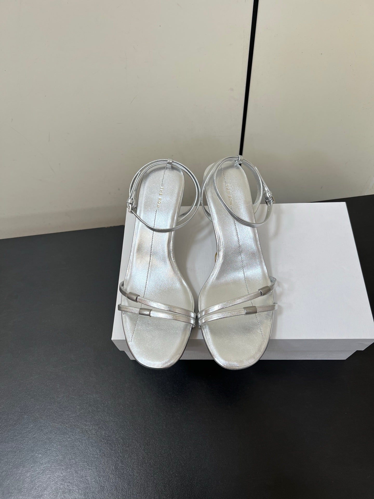 The Row Open-toe One-strap Sandals 6.5cm Silver Metallic Cowhide 340018