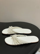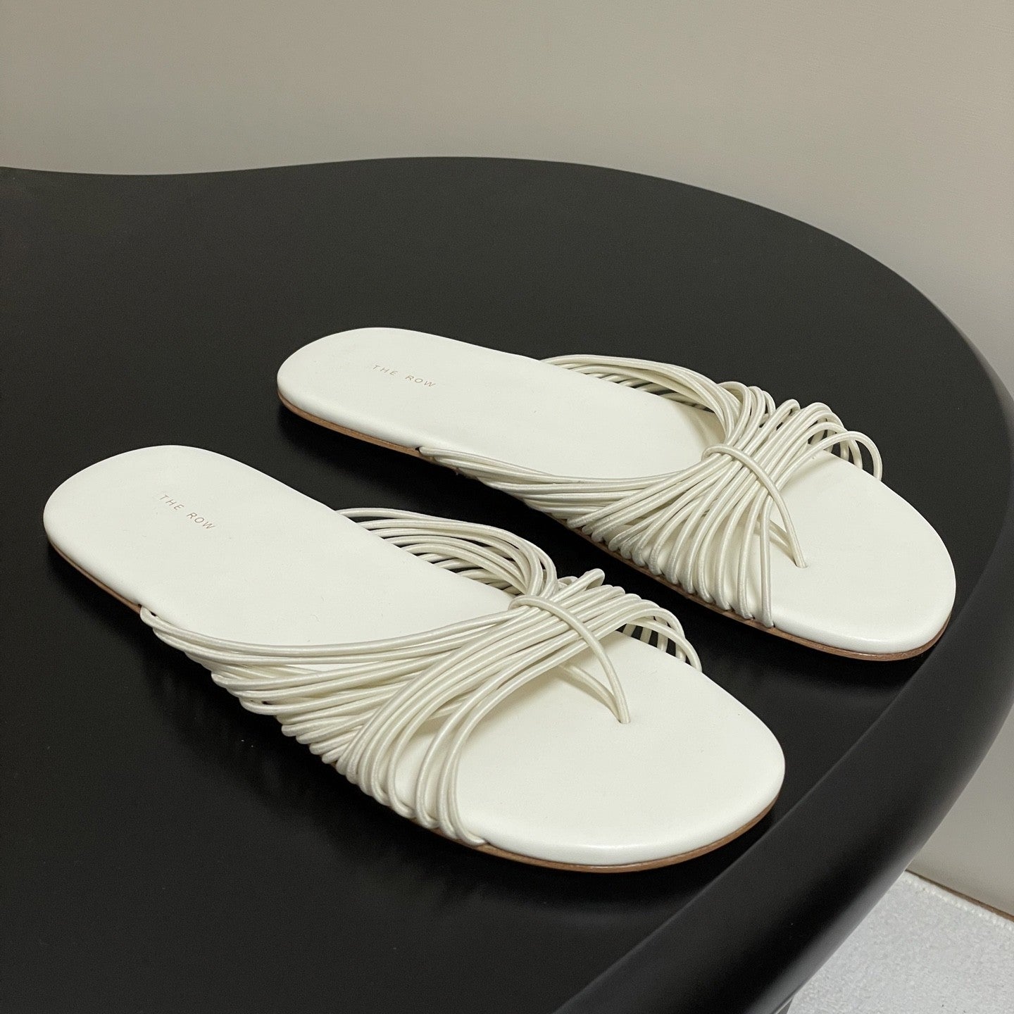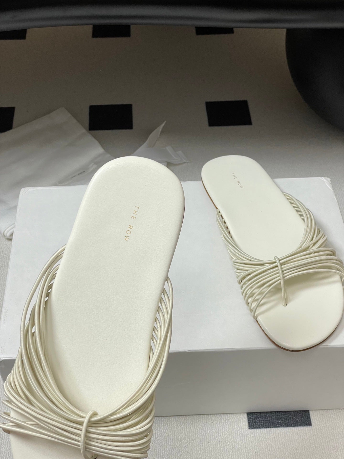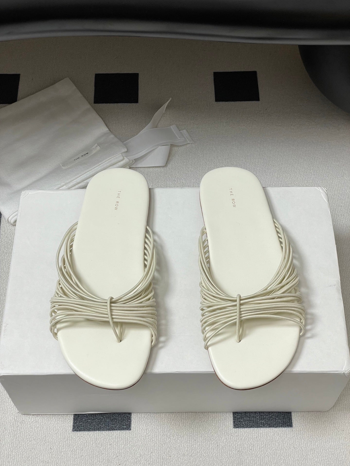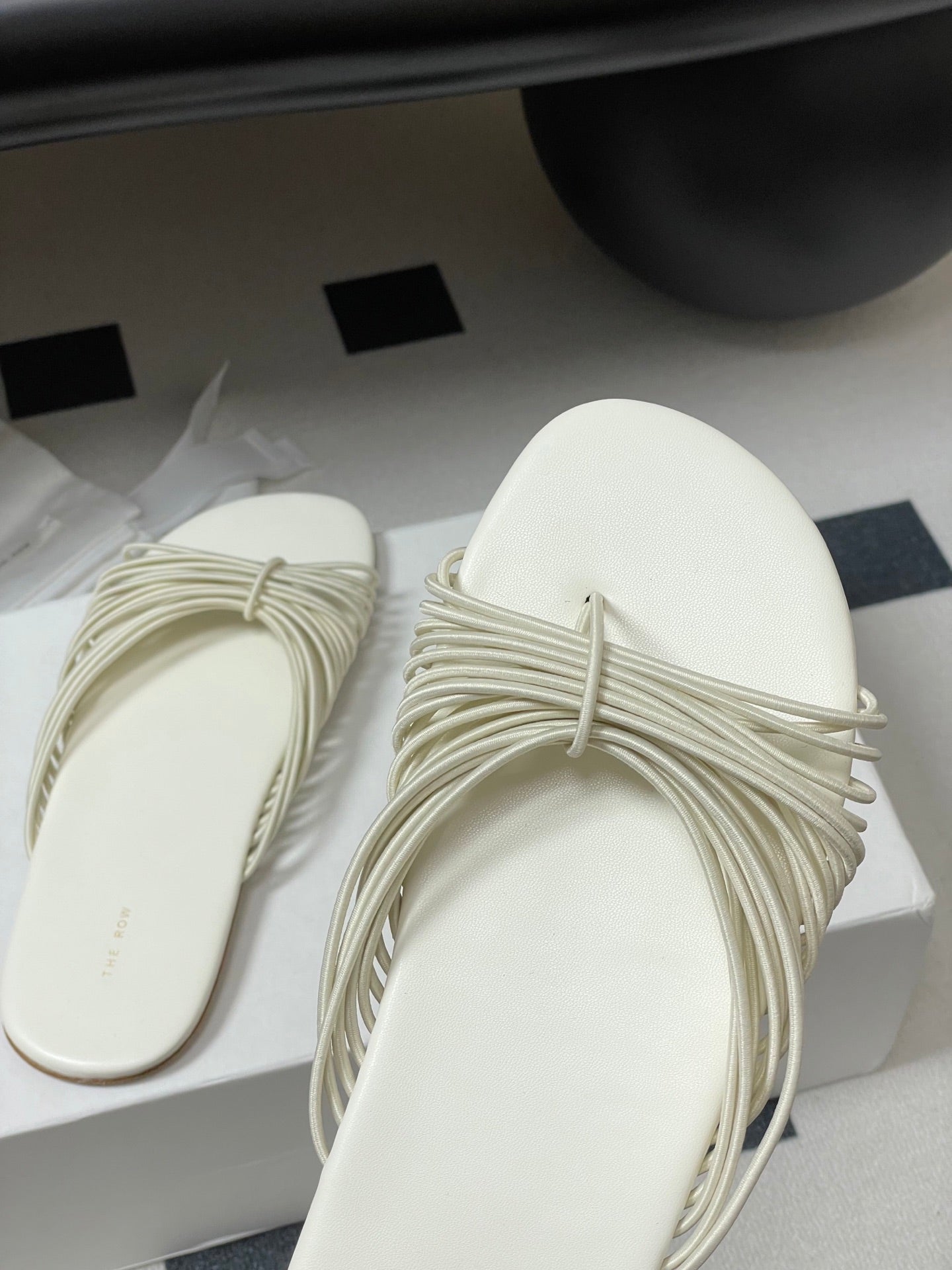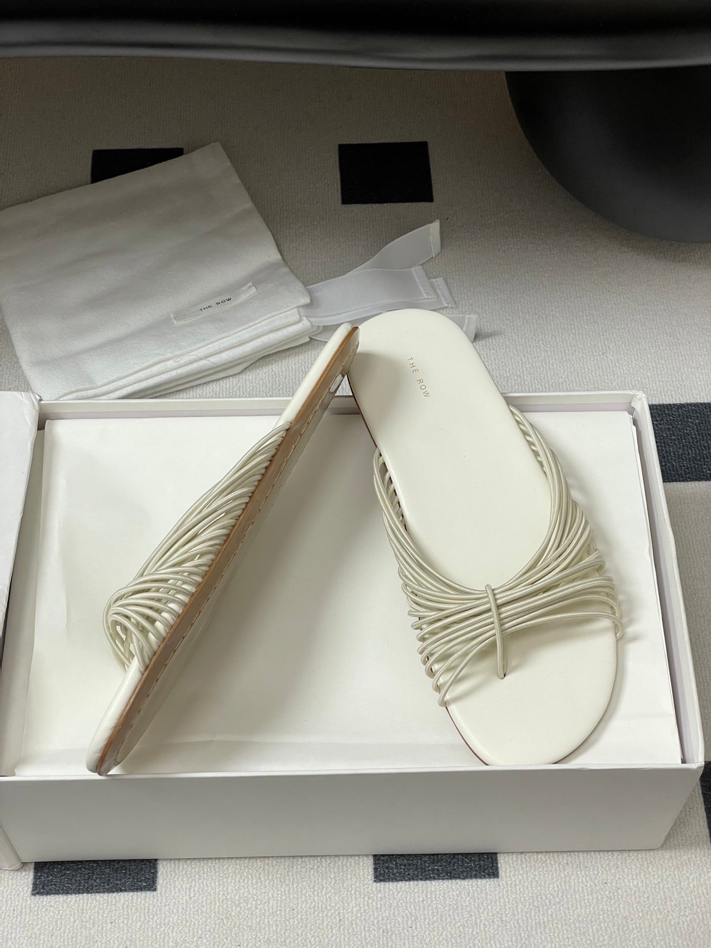The Row Sara Slide Sandal In Ivory Elastic And Leather 345204