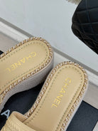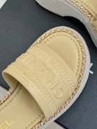 THICK SOLE WEDGE SLIPPERS IN BISQUE BEIGE CALFSKIN