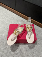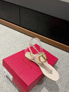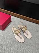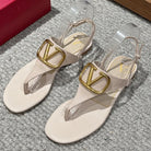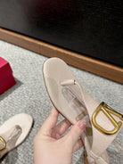THONG SANDAL IN BEIGE CALFSKIN WITH GOLD LOGO
