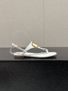 THONG SANDAL IN WHITE CALFSKIN WITH GOLD LOGO