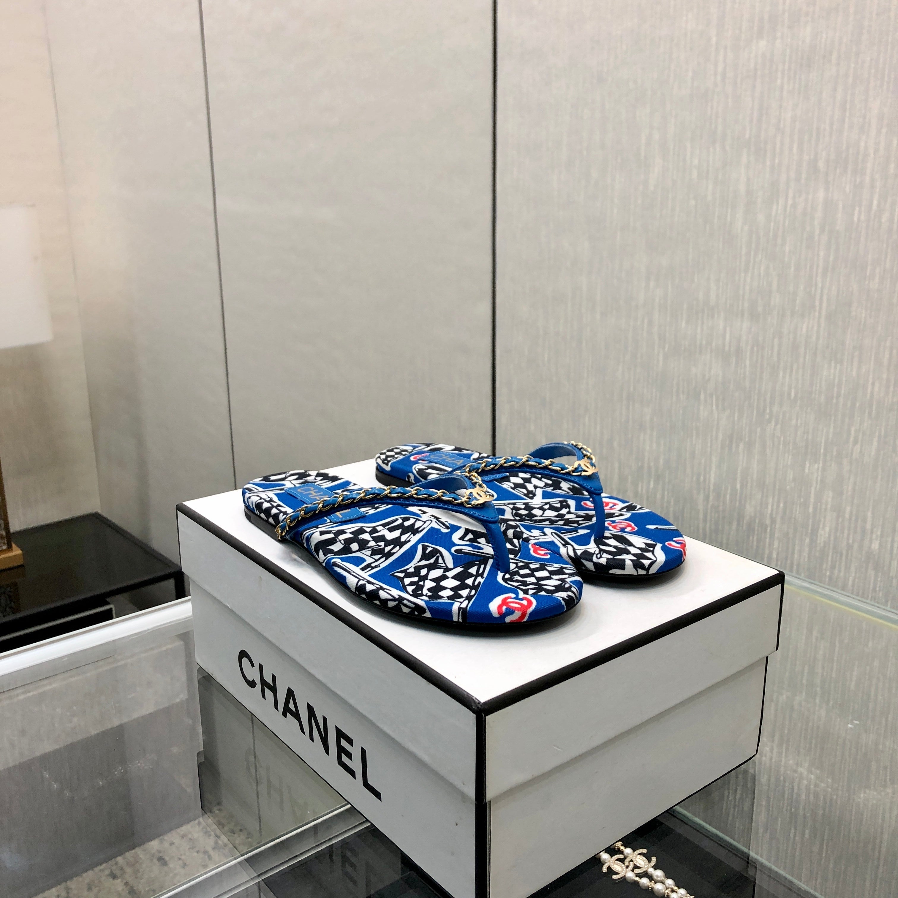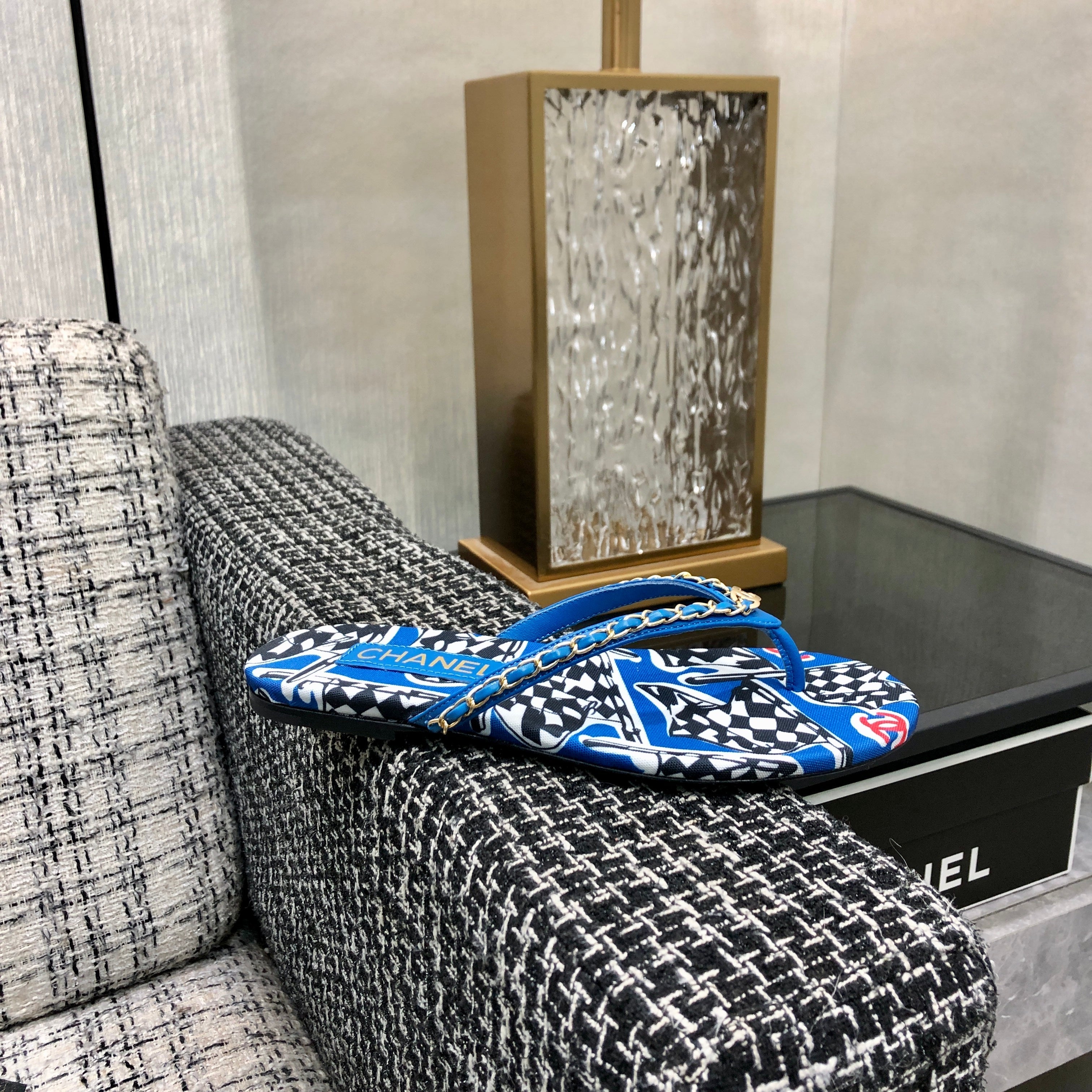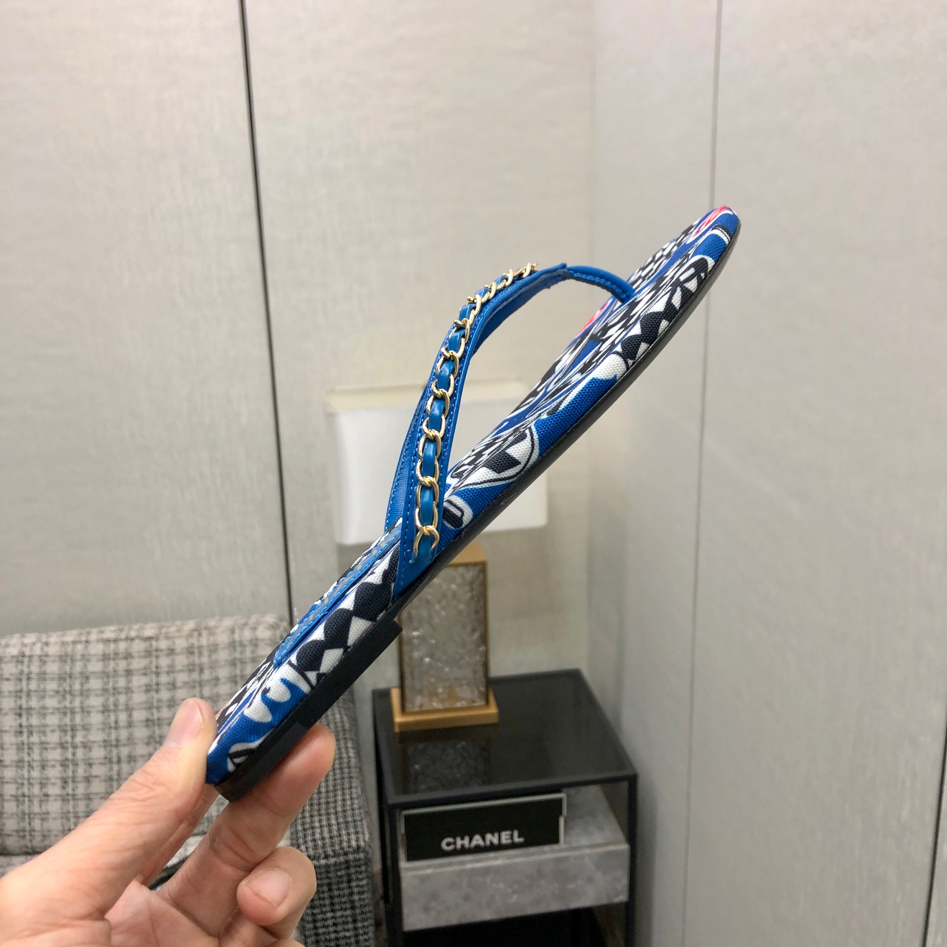 THONG SLIDE IN COBALT BLUE MIX COLORFUL FLORAL FABRIC
