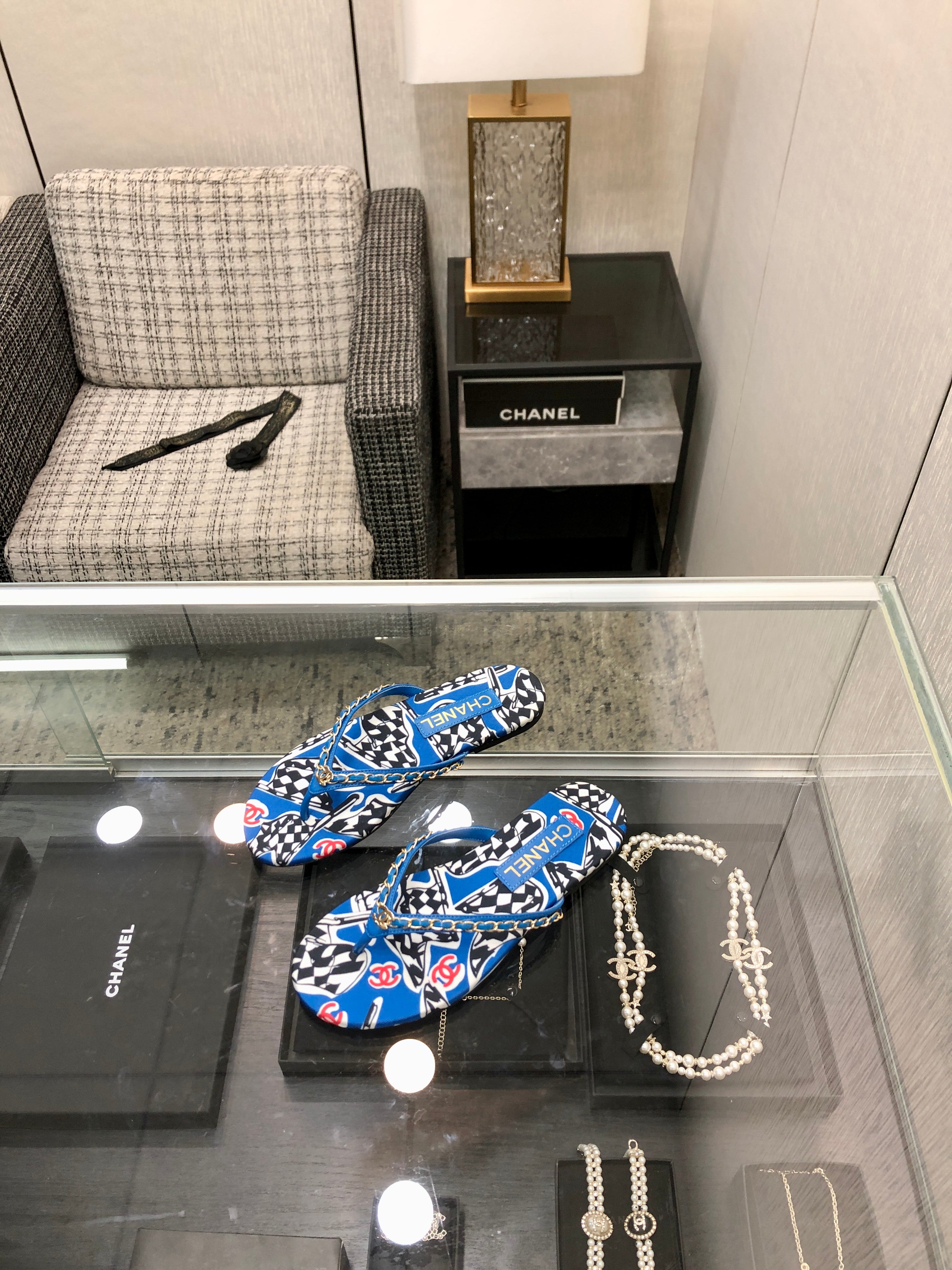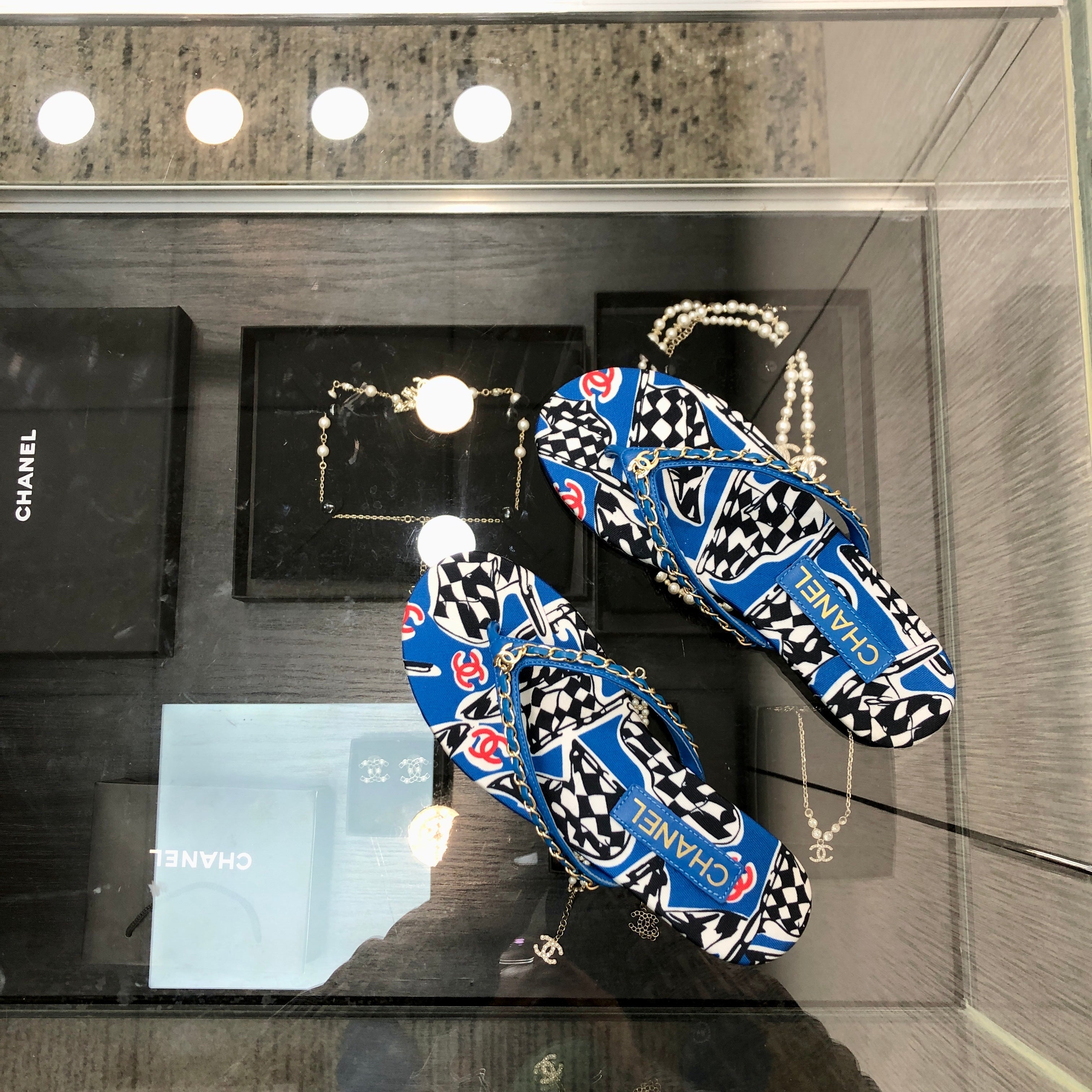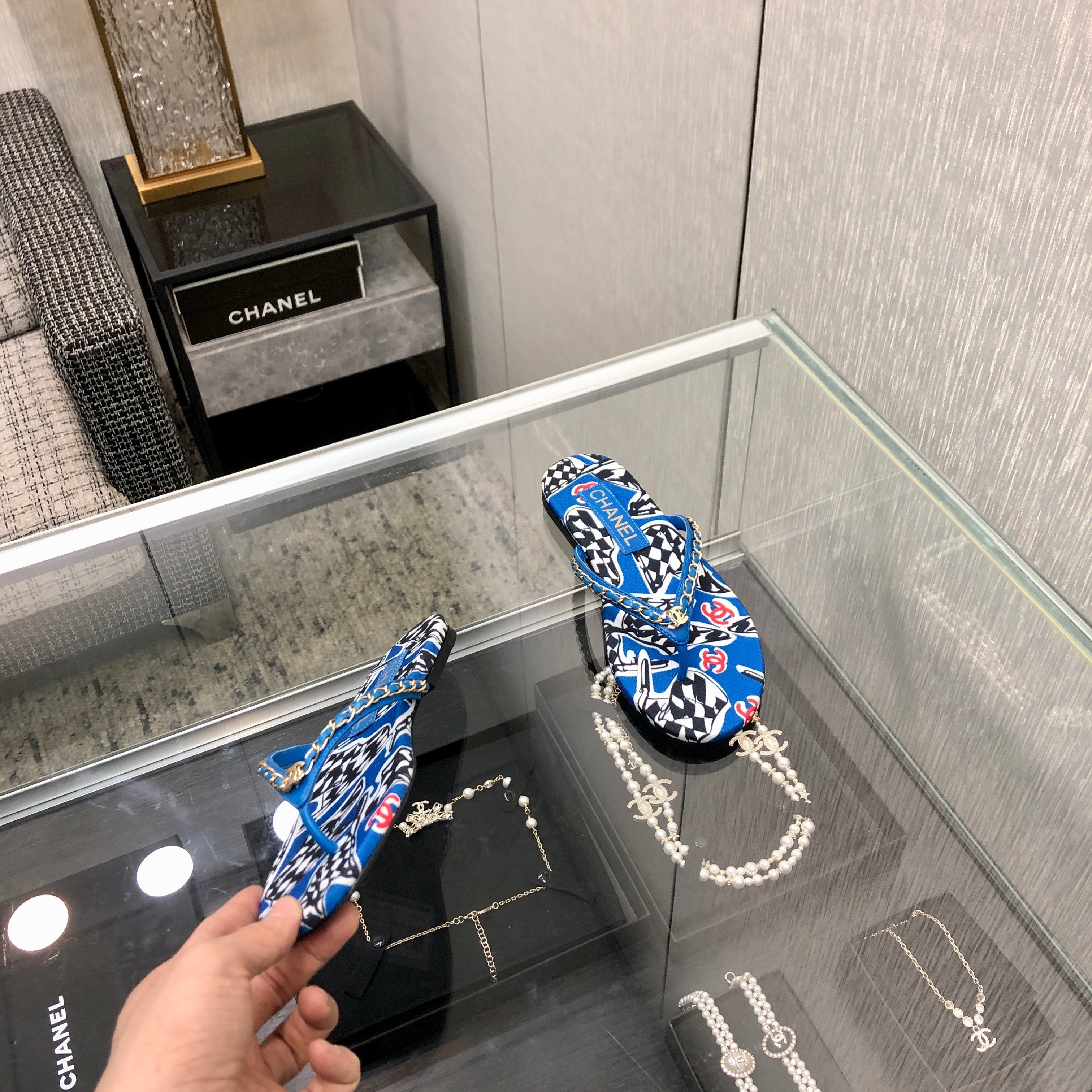 THONG SLIDE IN COBALT BLUE MIX COLORFUL FLORAL FABRIC