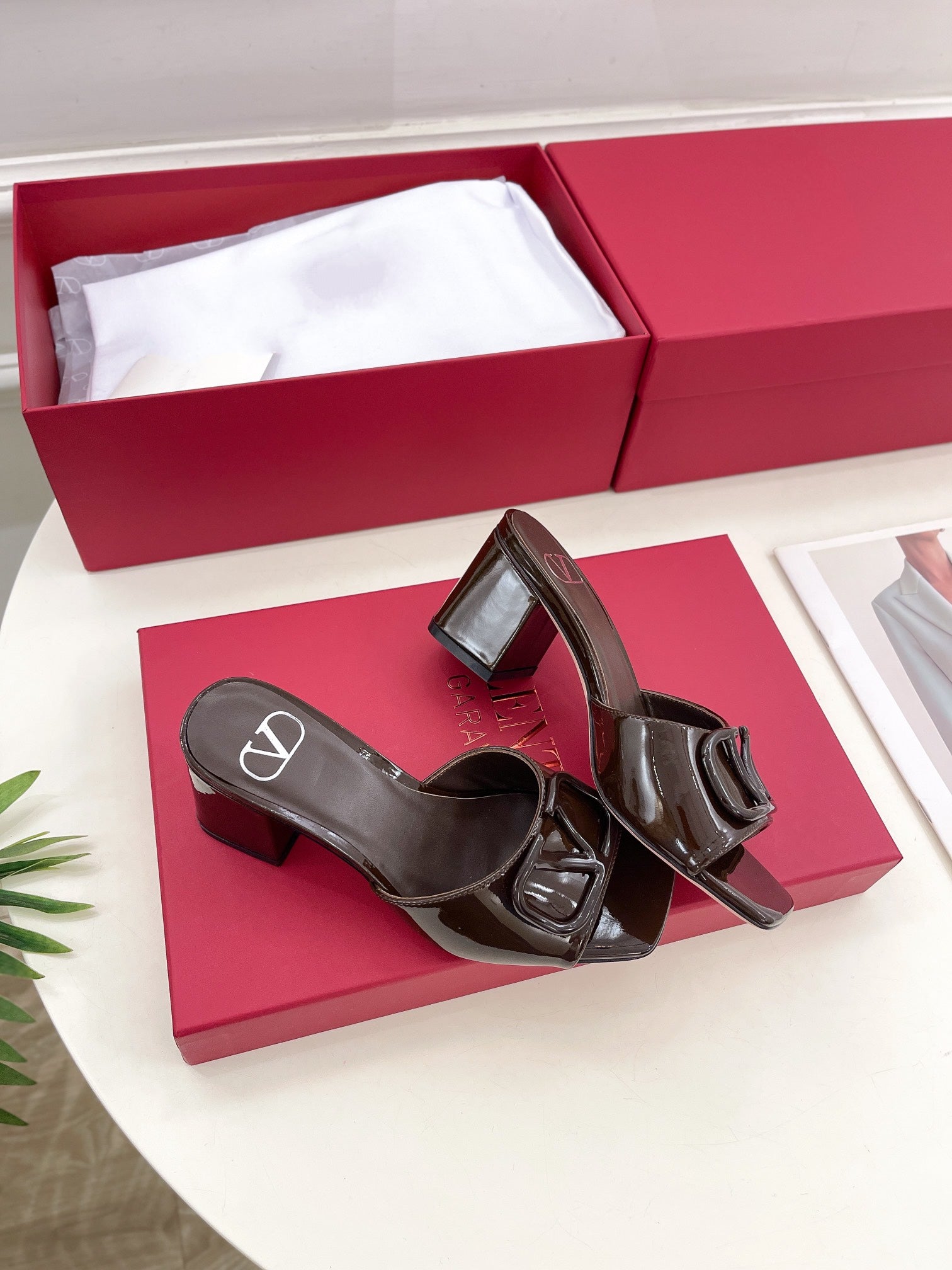Vlogo 60 Patent Sandal Brown Leather