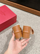VLOGO SIGNATURE SLIDE SANDAL 60MM IN BRONZE BROWN CALFSKIN