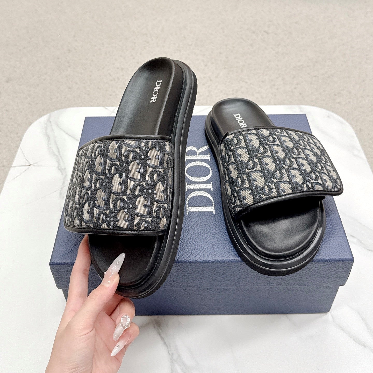 CD Aqua Sandals Beige Black Oblique Jacquard Frabic 476664