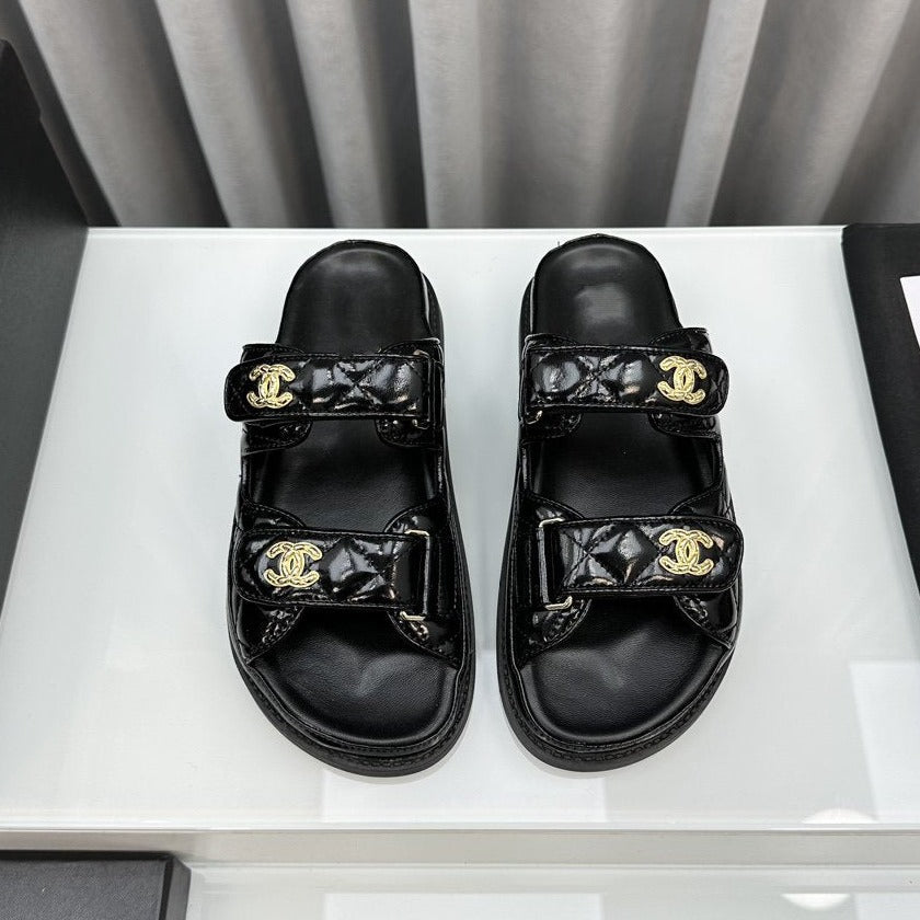 cc rev cone heel mule slide sandal black quilted lambskin 6cm