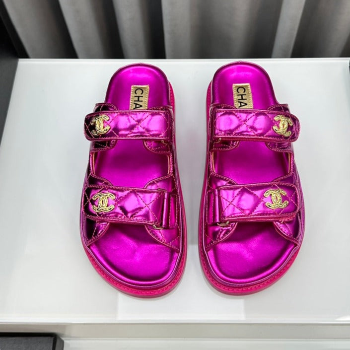 cc rev cone heel mule slide sandal pink quilted lambskin 6cm