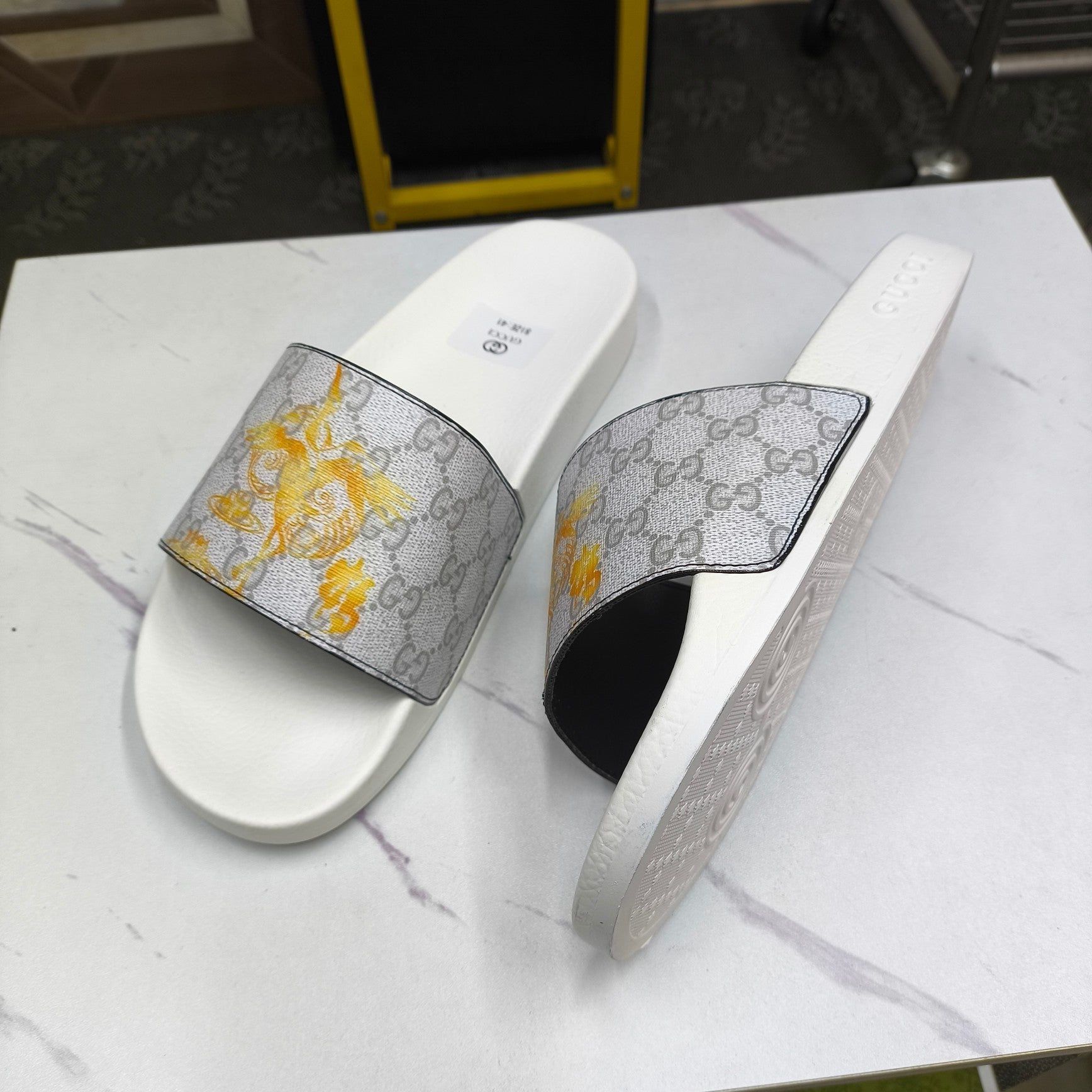 GG Men's Bee Slide Brown Gingham Fabric 538693