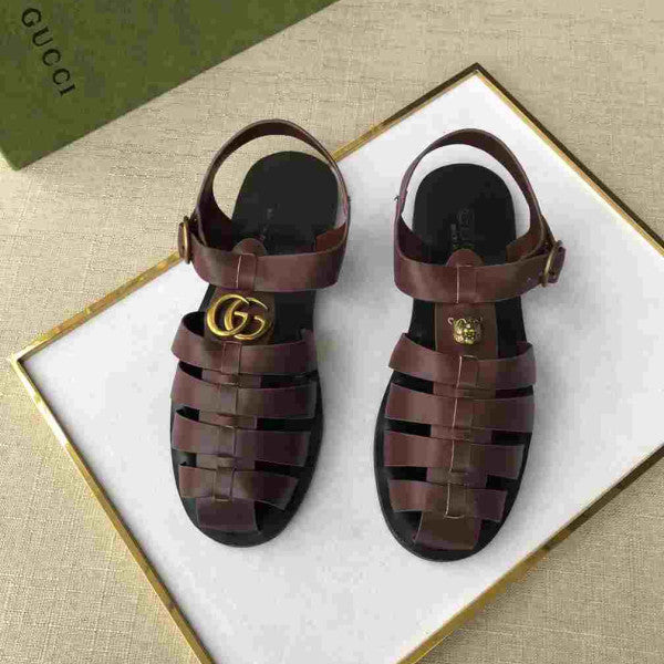 GG Men's 25 Sandals Slide Black Cowhide 738474
