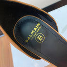 BALMAIN 25S SQUARE STRAP HIGH HEELS 100MM IN CARAMEL CALFSKIN