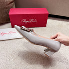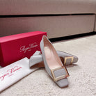 Belle Viv Buckle Square Pumps Grey Italian Imported Leather