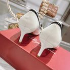 Belle Viv Metal Buckle Pumps 65 White Black Patent Leather