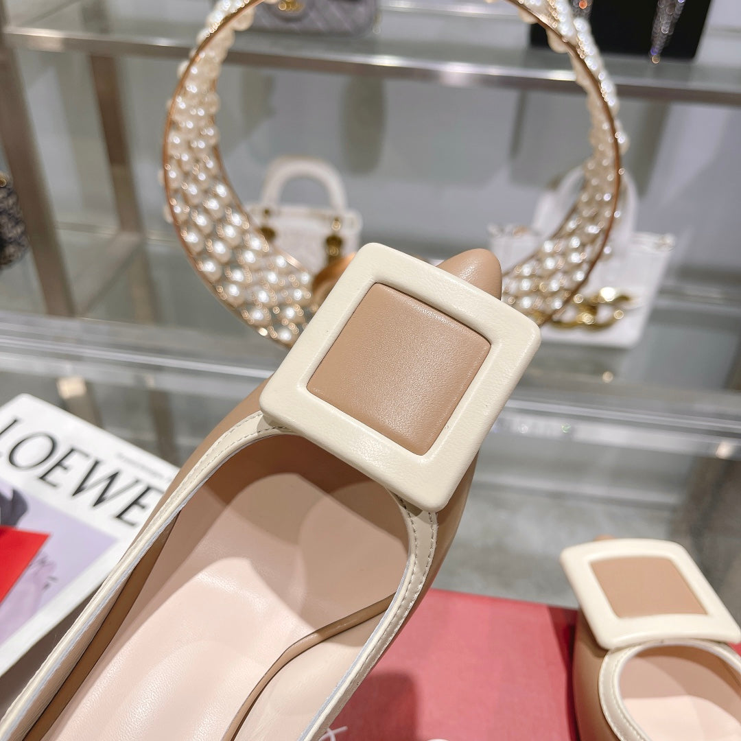 Belle Viv Metal Buckle Slingback Pumps 85 Camel Patent Leather