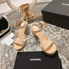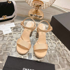 CC 25C 10CM Mid Heed Sandals Cream Fabric 213326