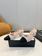 cc 25c slingback 65 pink white tweed black grosgrain 233612