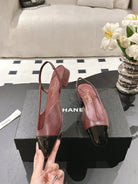 cc 25c slingback flat 15mm cross line pattern burgundy lambskin 237491