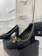 CC High Heels 65mm Black Bow Tie Chain Lambskin