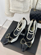 CC High Heels 80mm White Black Bow Quilted Calfskin