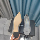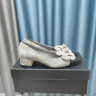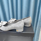 CC MEDIUM HEELS IN SPANISH GRAY SUEDE AND BLACK CALFSKIN WITH FLOWER