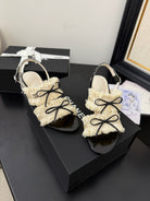 cc25 slingback sandal ̣65mm bow black grosgrain white canvas 233589