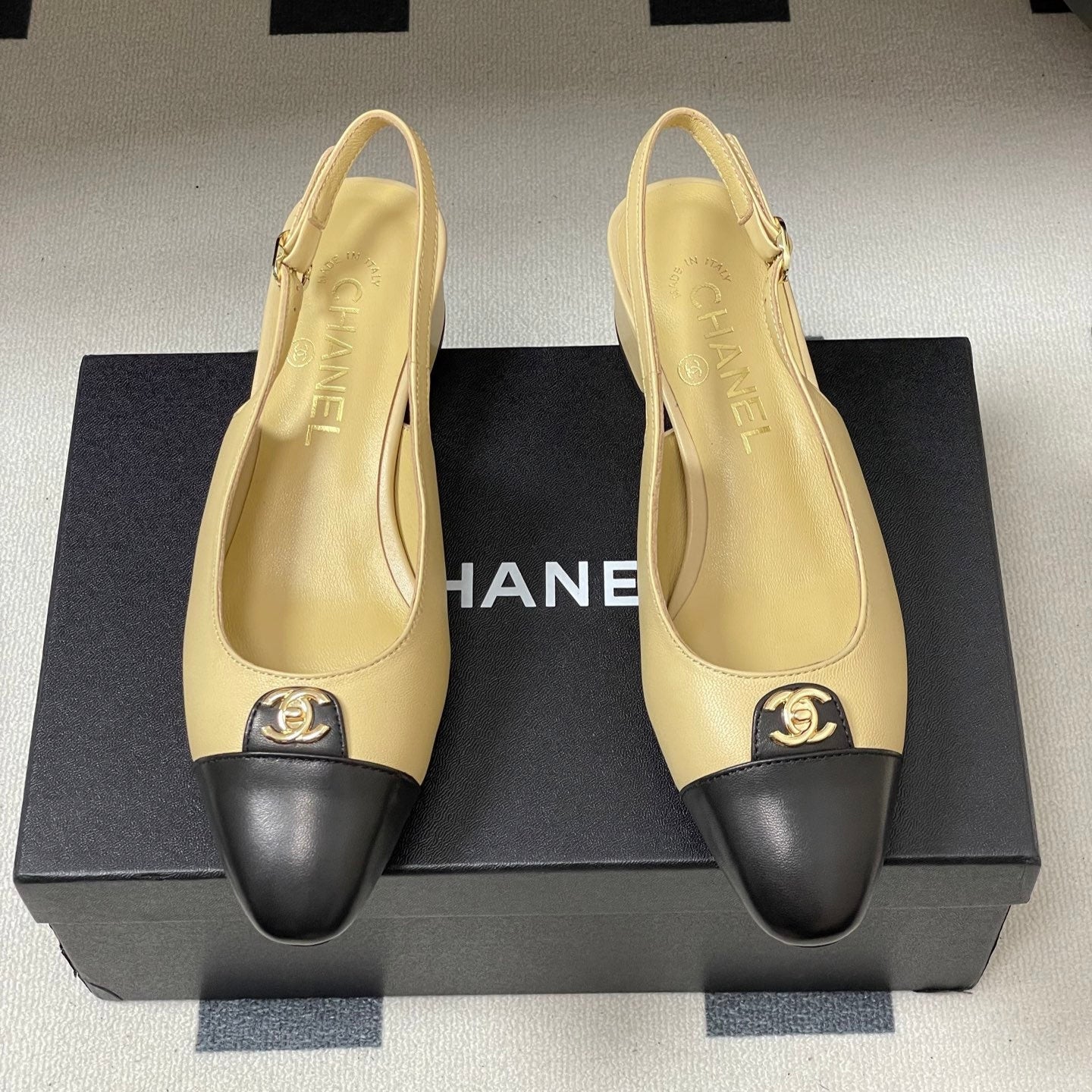 Chanel 25 Slingback 30mm Beige Black Lambskin 473213