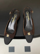 Chanel 25 Slingback Black Brown Lambskin Fabric 473210