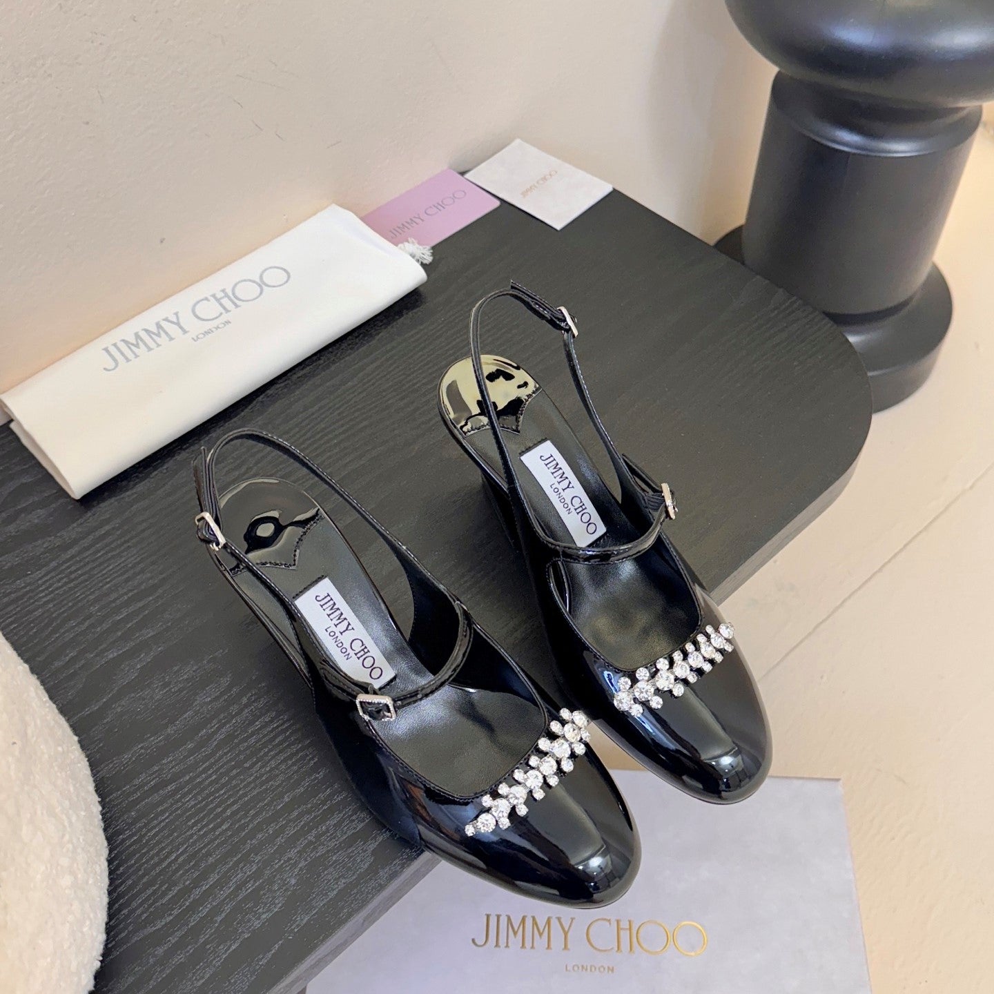 Jimmy Belinda Slingbacks 70mm Black Patent Leather 424497