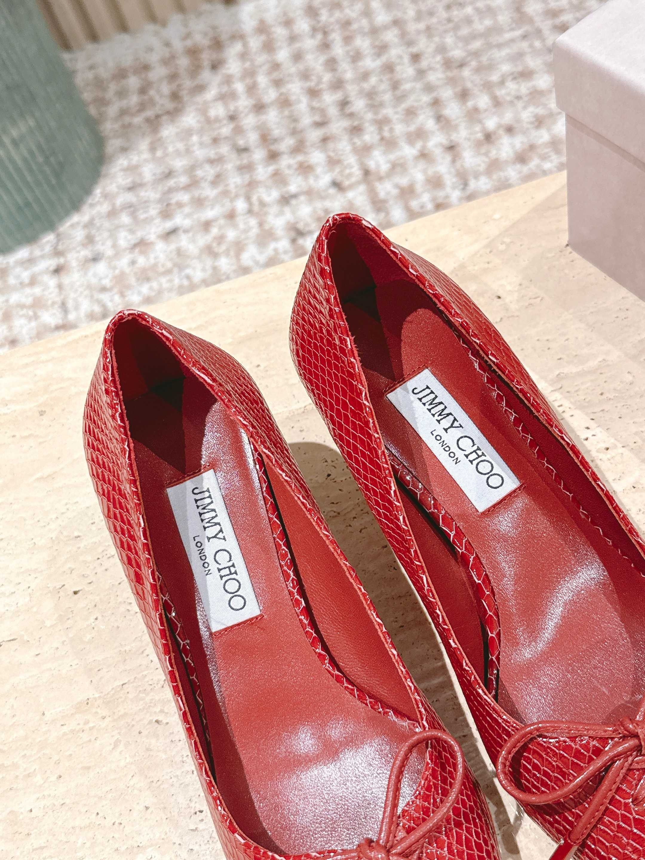 Jimmy Scarlett Snake Embossed Pumps 50mm Red Cowhide 431853