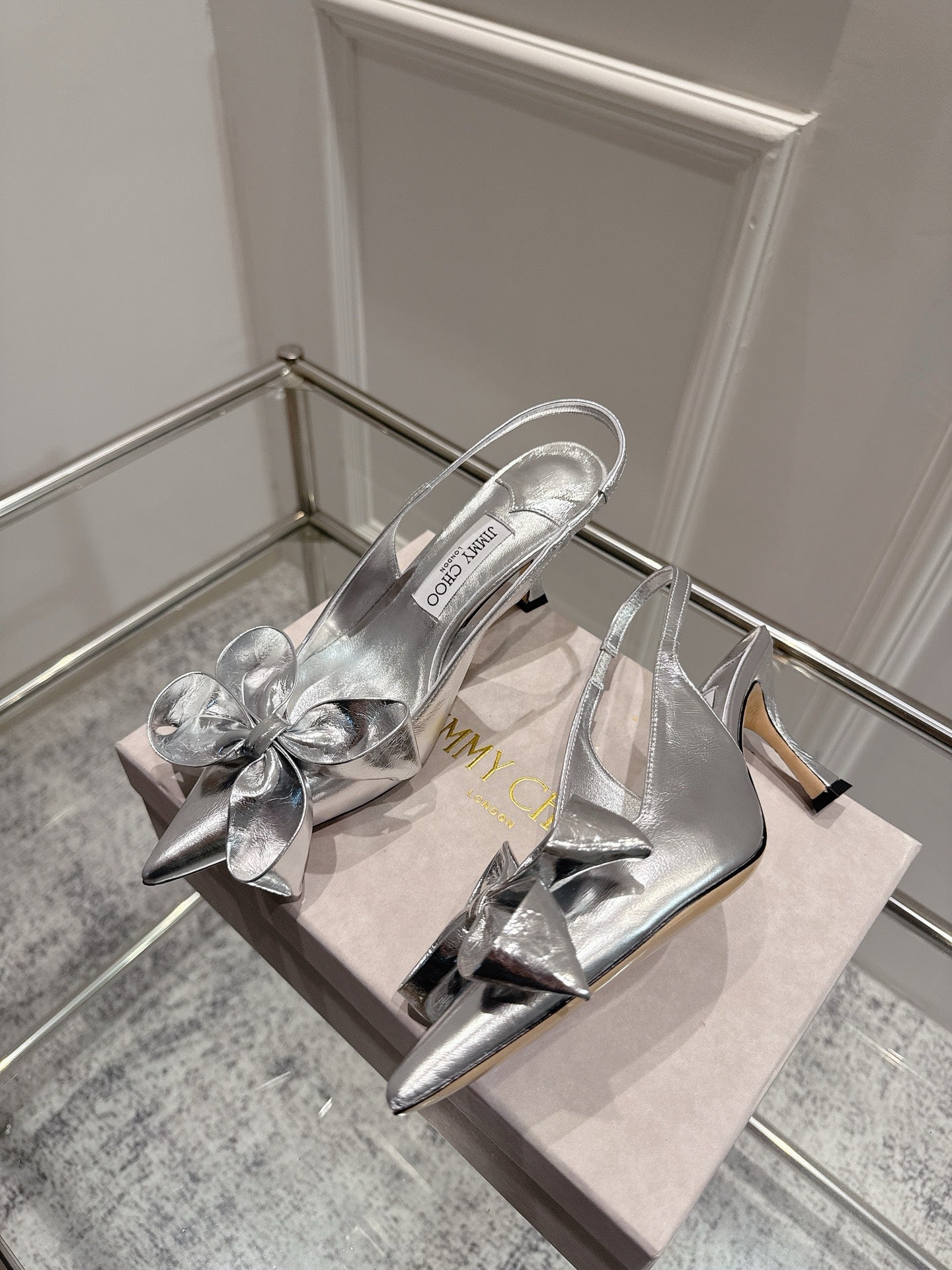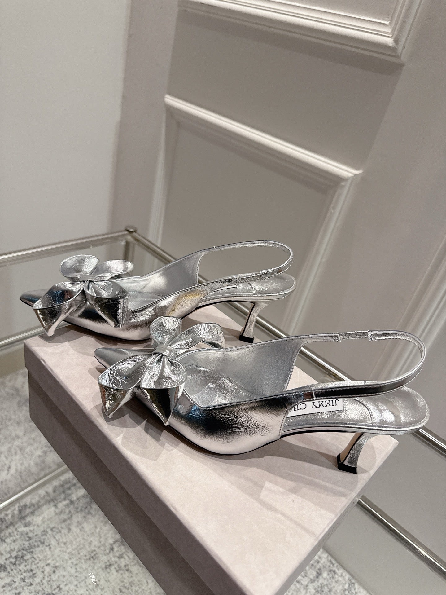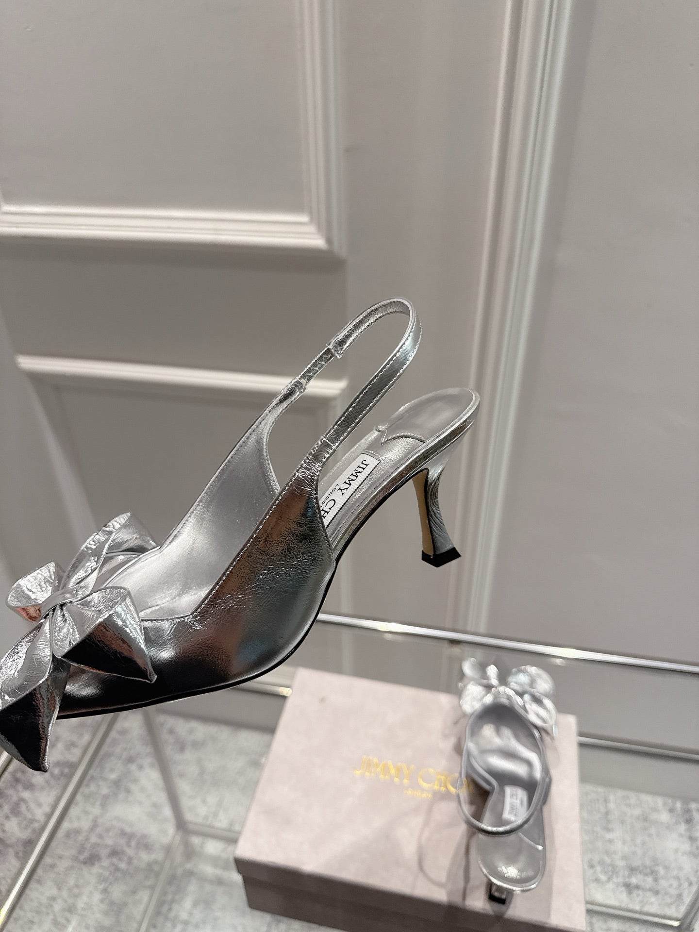 Jimmy Staz Slingback 70mm Sliver Sheepskin 422444