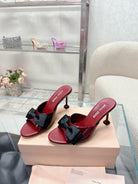 Miu Mordoré Black Bows Mules 70mm Burgundy Cowhide 445511