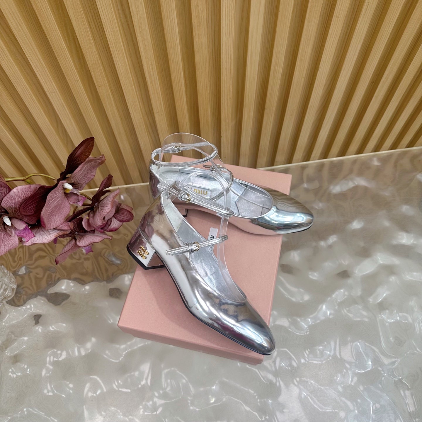 Miu Slingback Pumps With Straps 45mm Sliver Patent Leather 498172