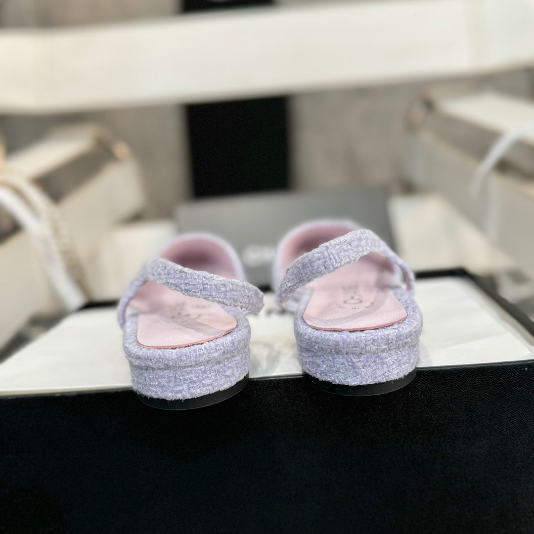 slingbacks flat light violet tweed black patent calfskin