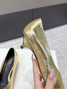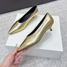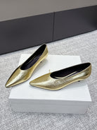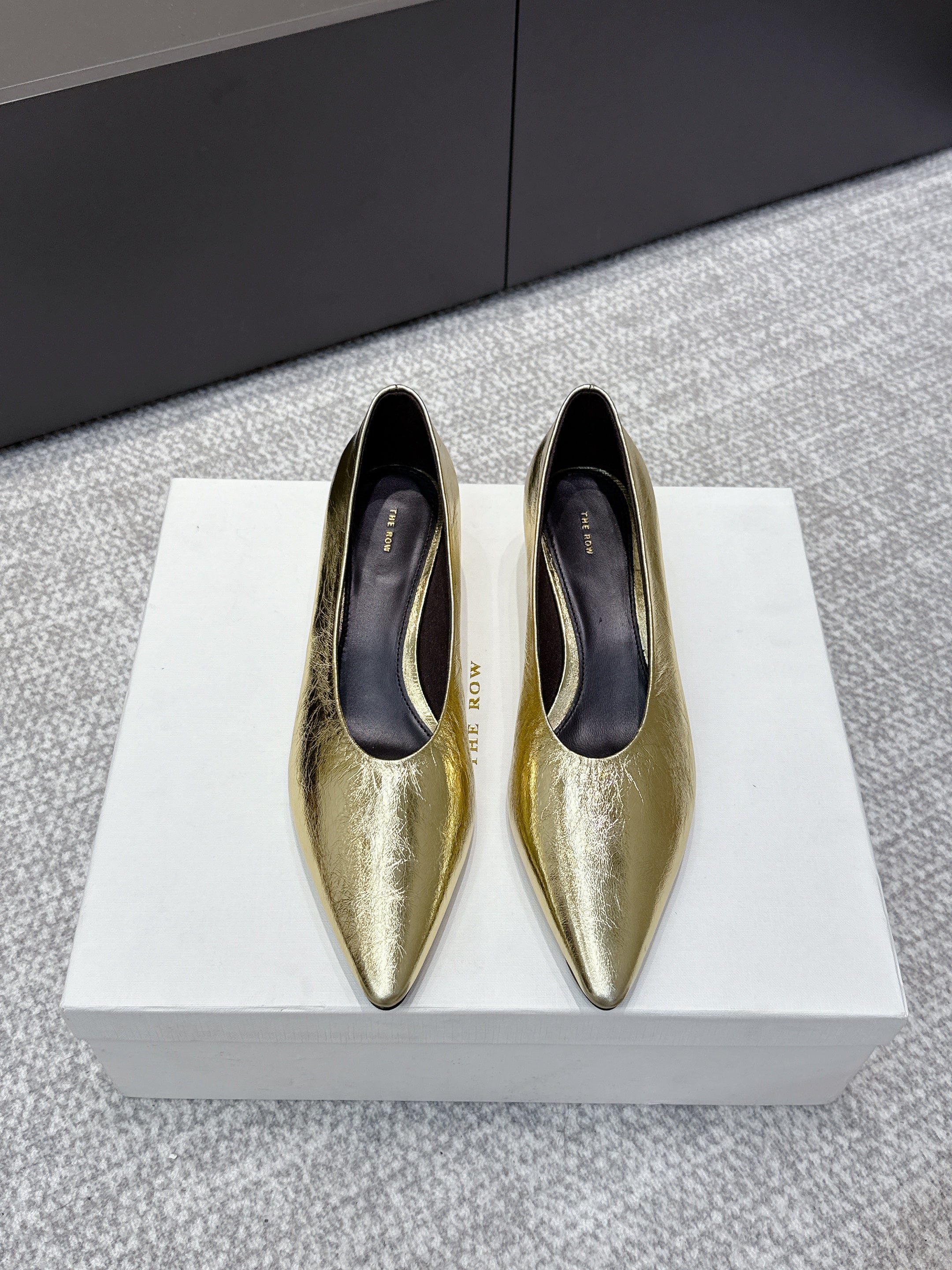 The Row 25ss TR Kitten heel Pointed Toe Shoes 35mm Gold Metallic Sheepskin 451306