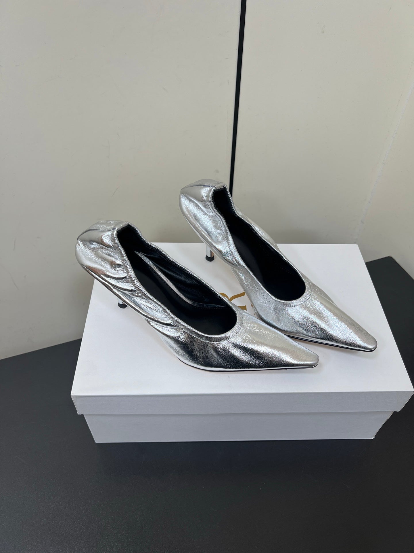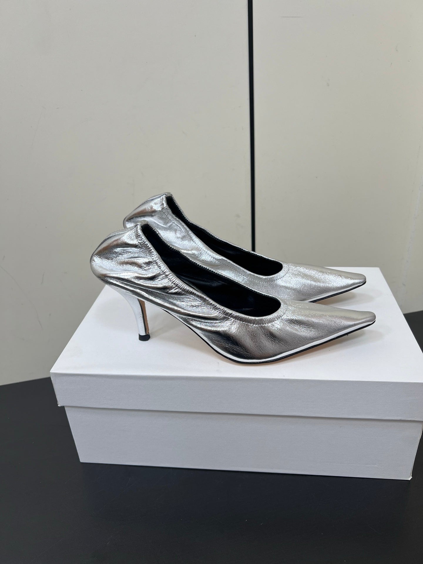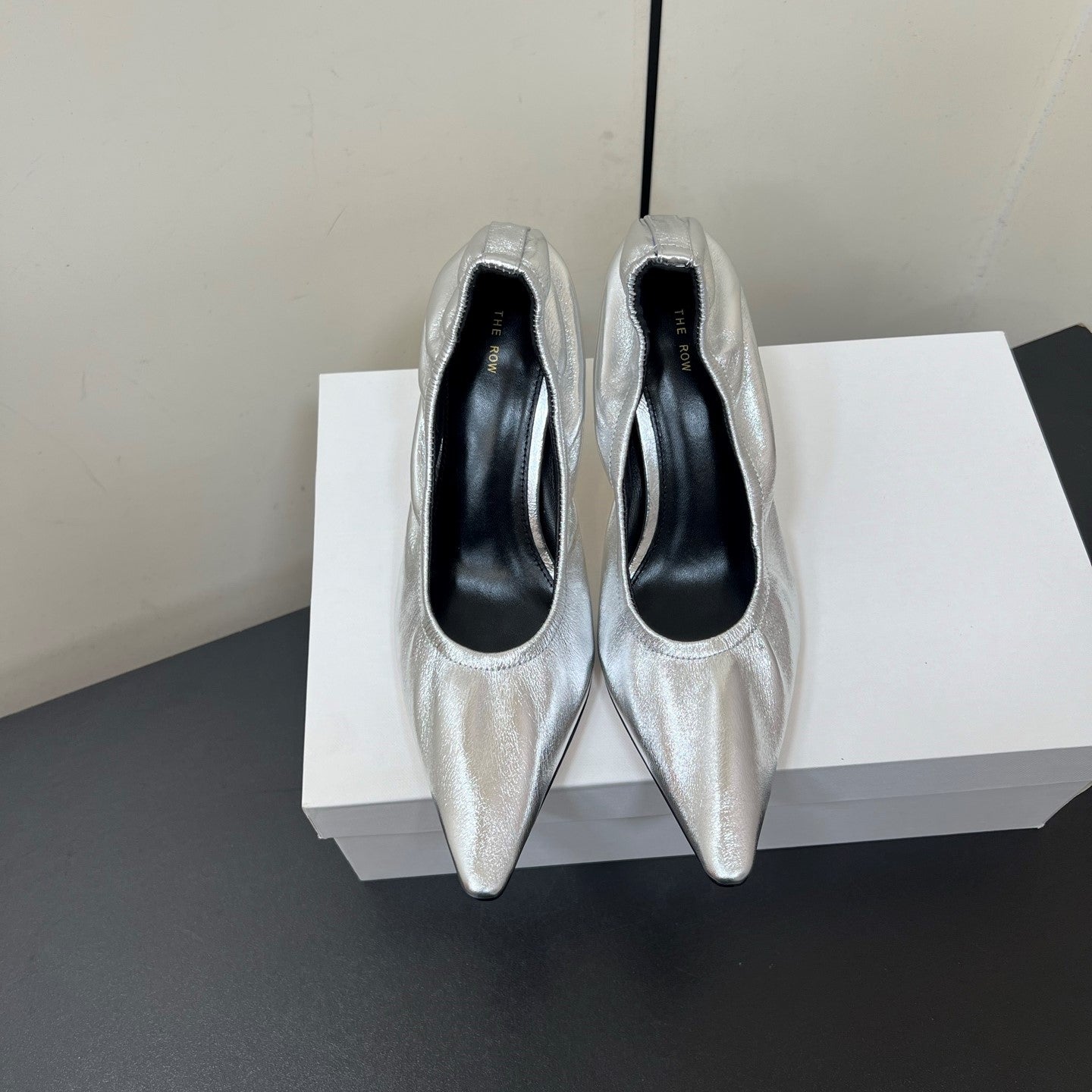 The Row Ava Gathered Pumps 65mm Silver Metallic Calfskin 340011