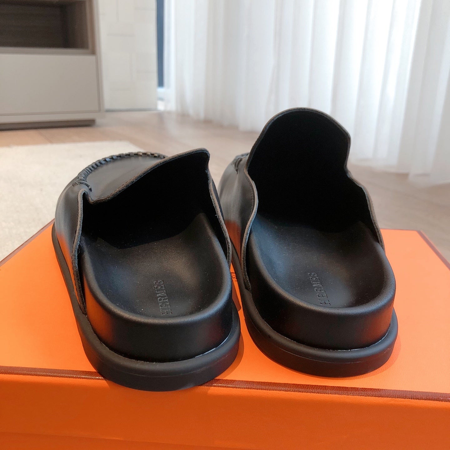 HM Men's Izmir Slide Orange Black Cowhide 743930
