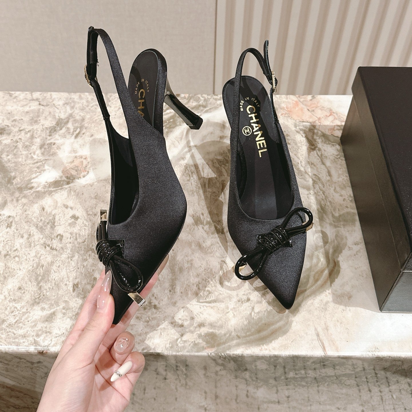 CC 25ss Bow Tie Slingbacks 20mm Black Satin & Patent Leather 447411