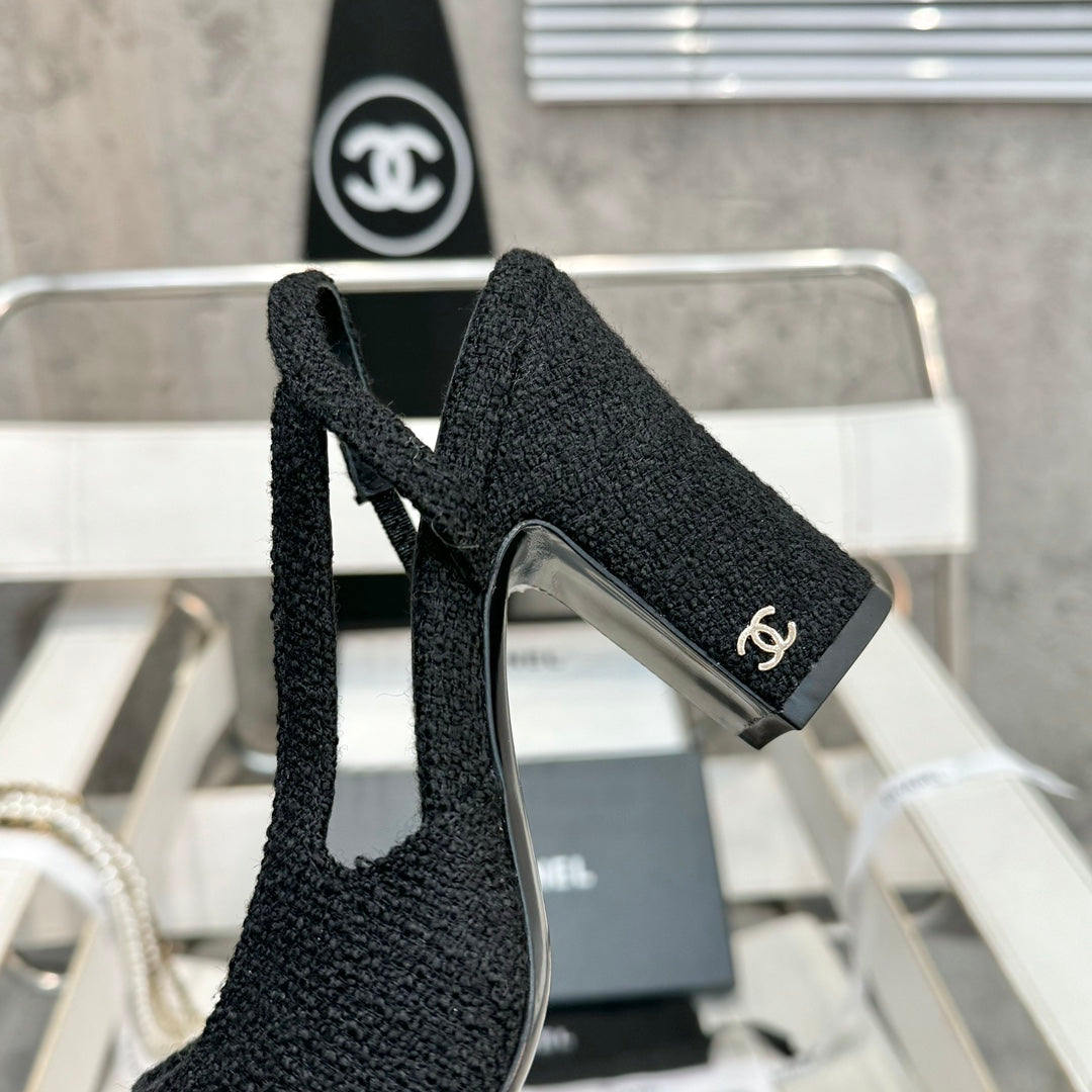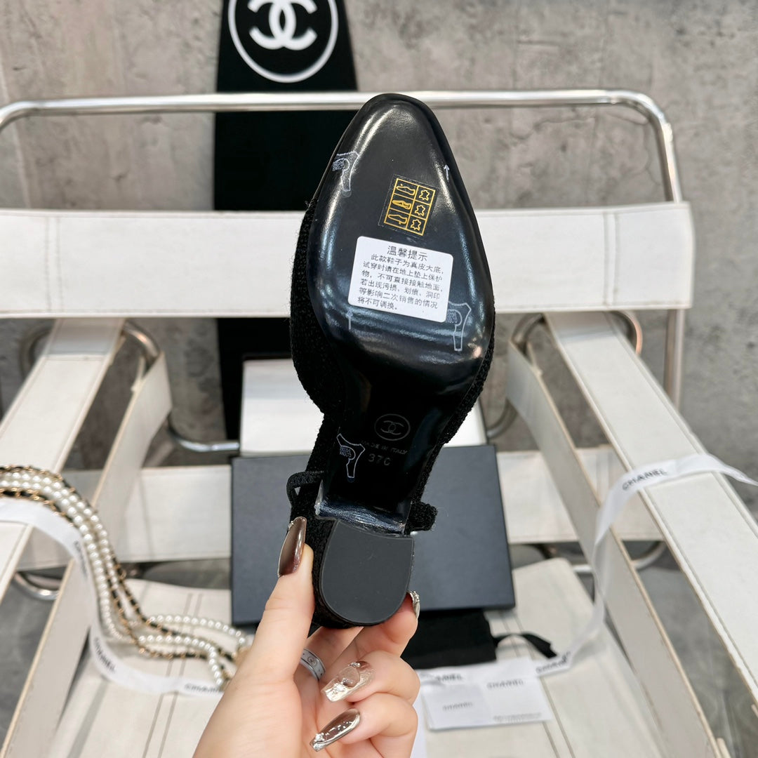 CC 2024 SLINGBACKS 40MM BLACK LAMBSKIN
