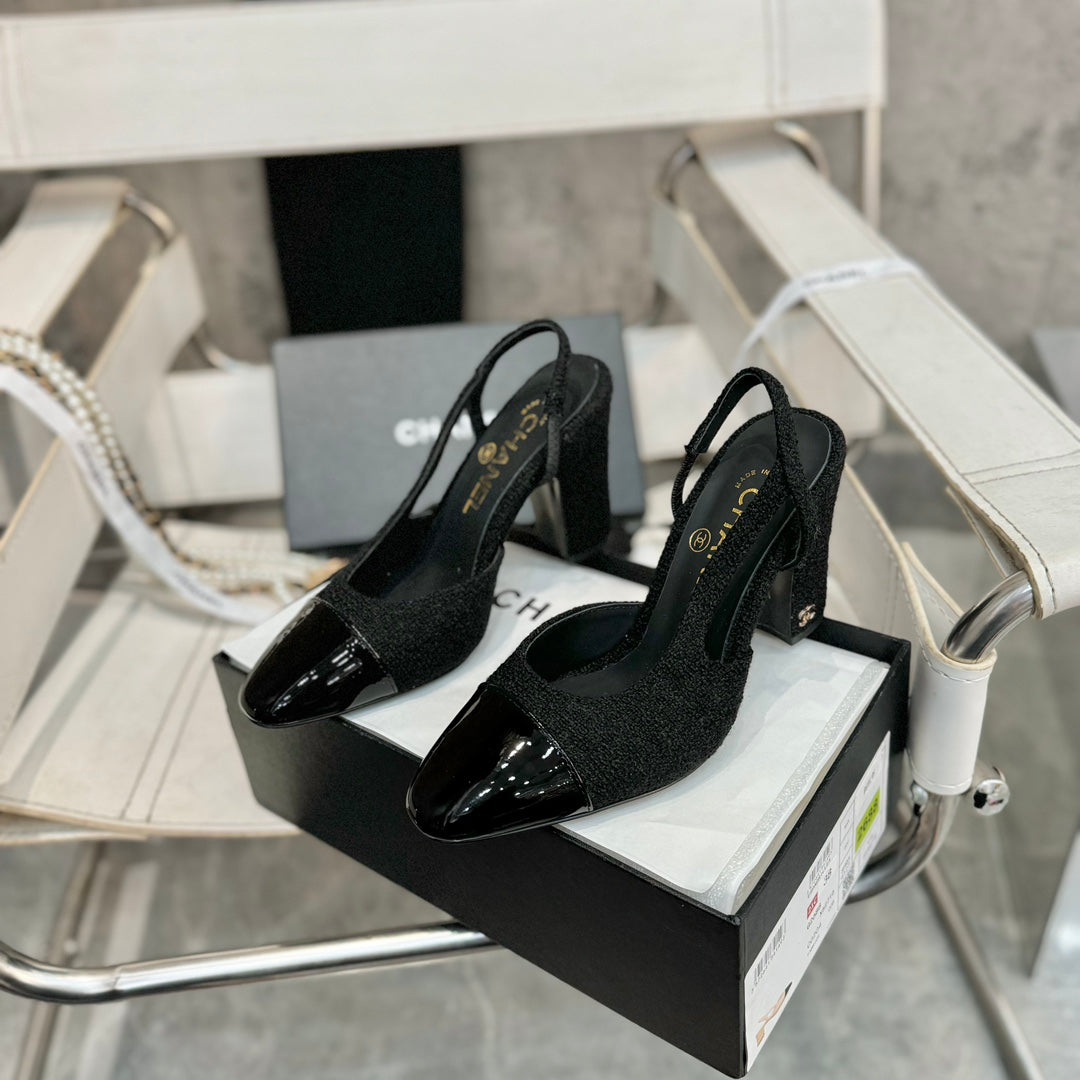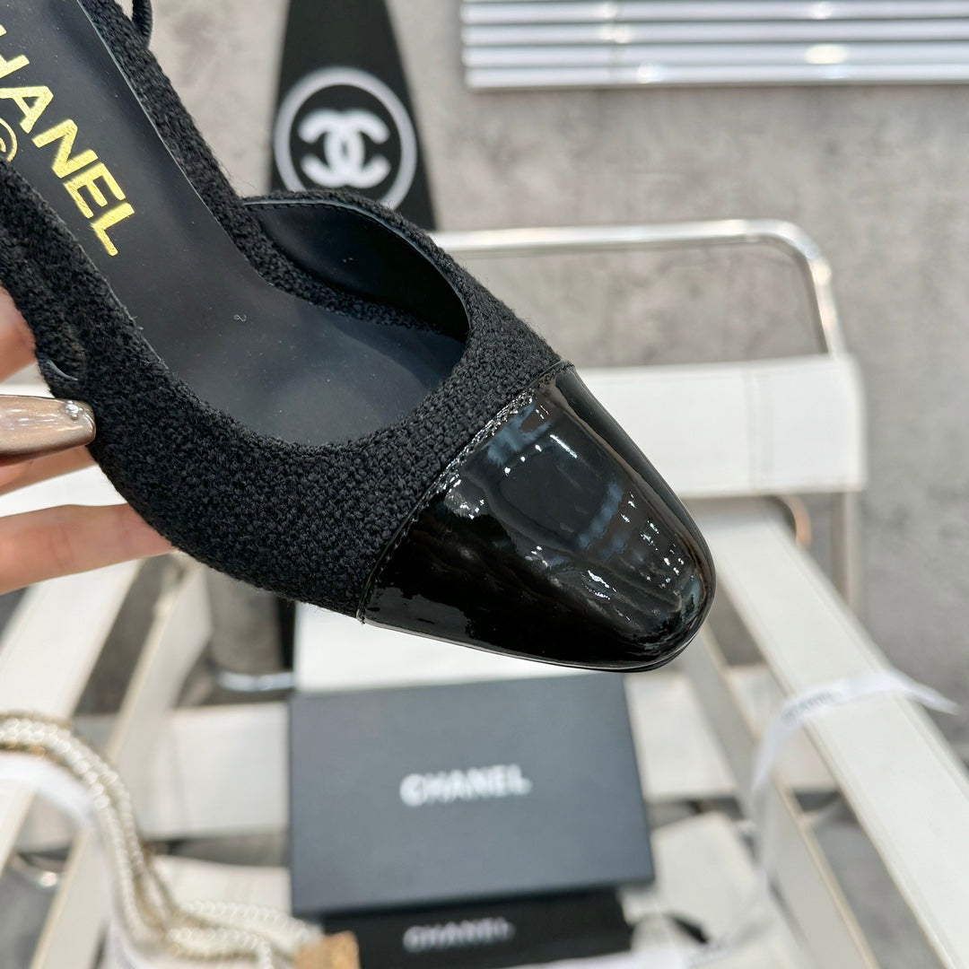slingbacks 95 black tweed black patent calfskin