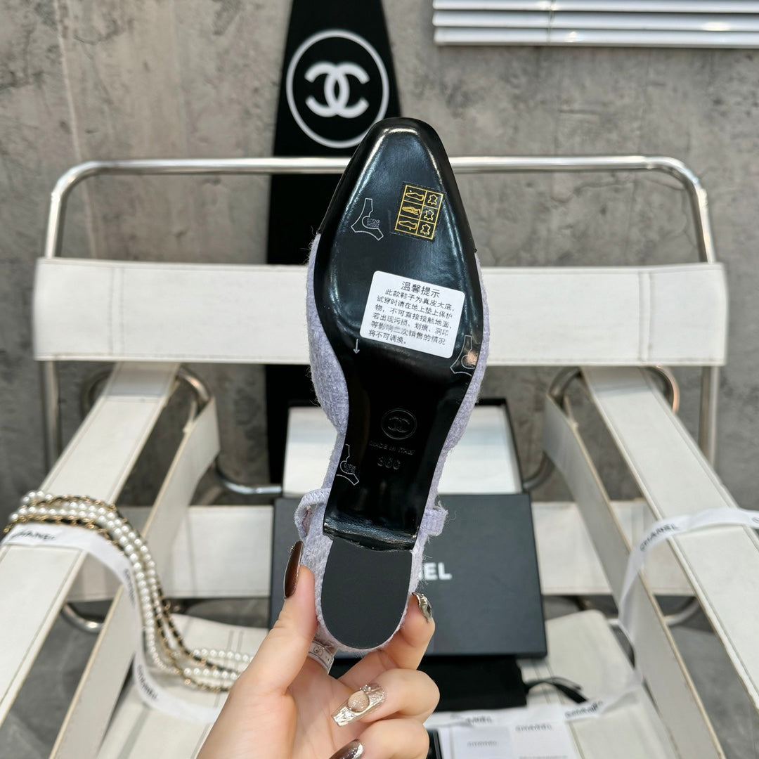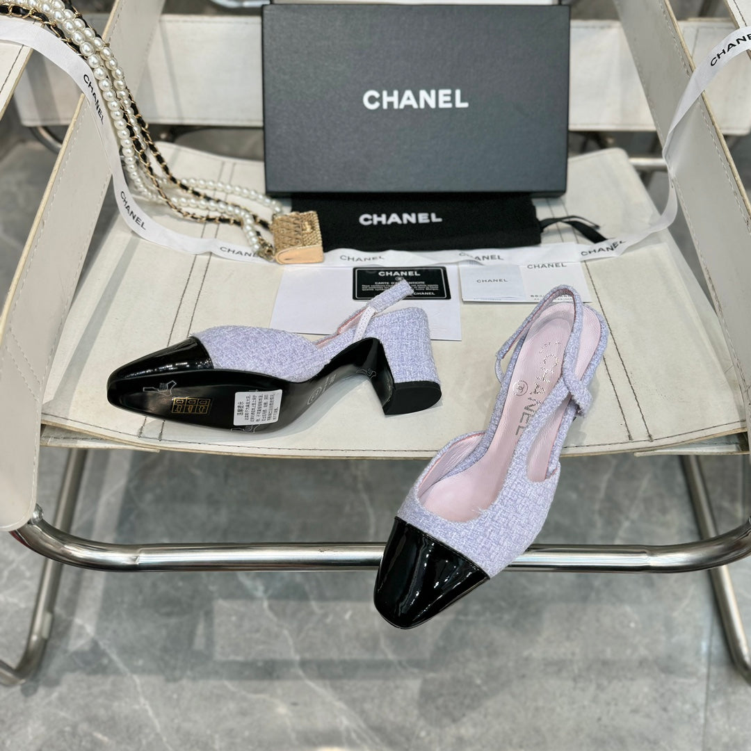 slingbacks 65 light violet tweed black patent calfskin
