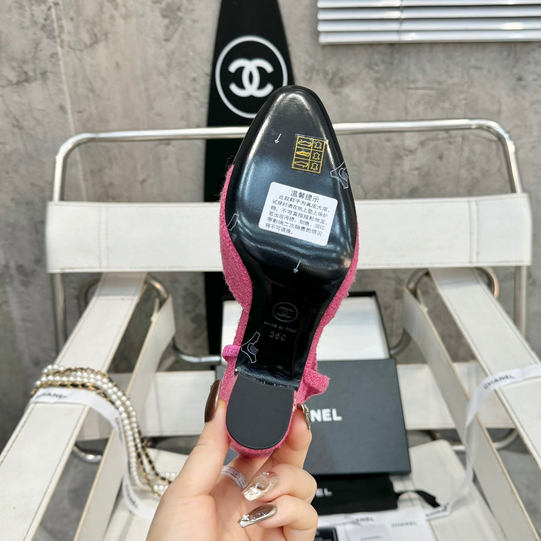 slingbacks 65 pink tweed black patent calfskin