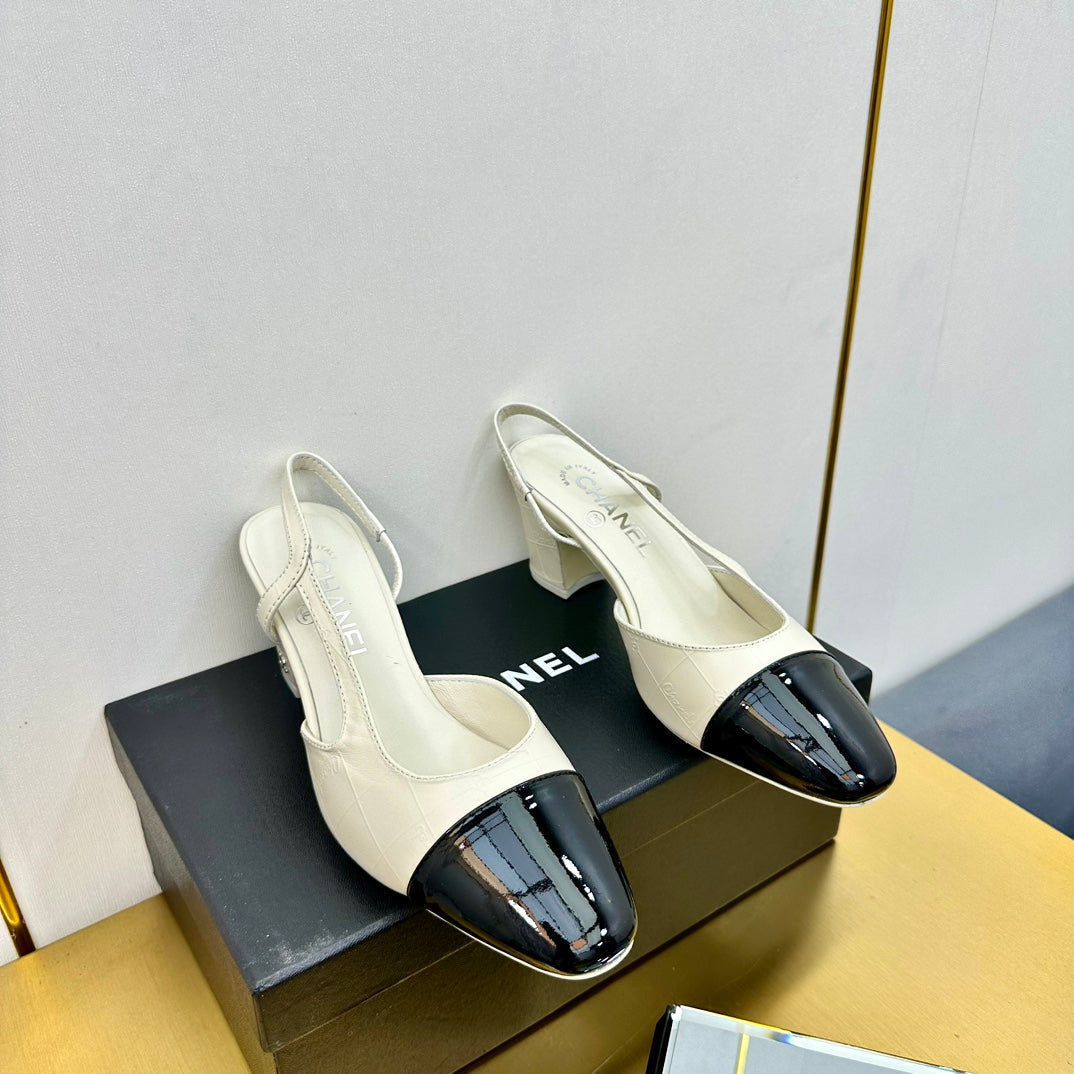 cc slingback pumps 65 in beige lambskin and black patent calfskin