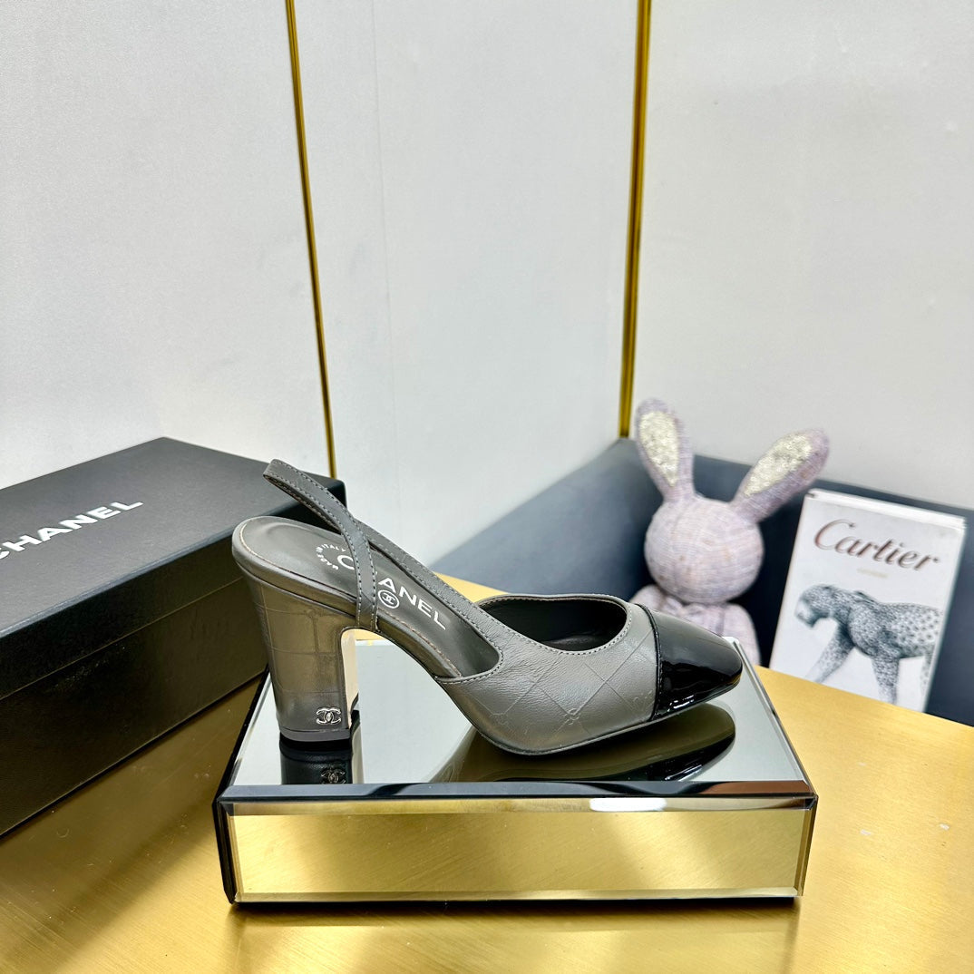 cc slingback pumps 65 in grey lambskin and black patent calfskin 137435