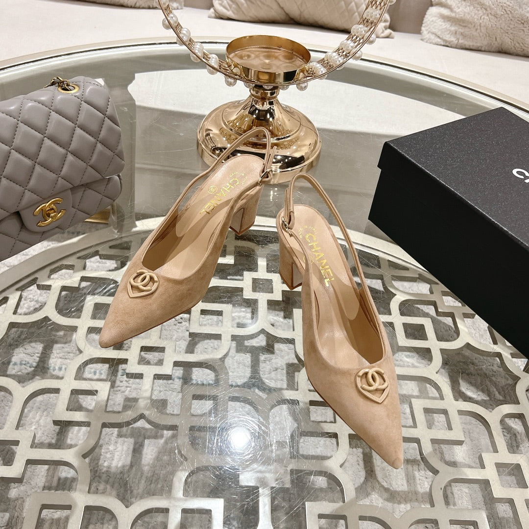 cc 25c slingback flat 15mm cross line pattern beige lambskin 237490