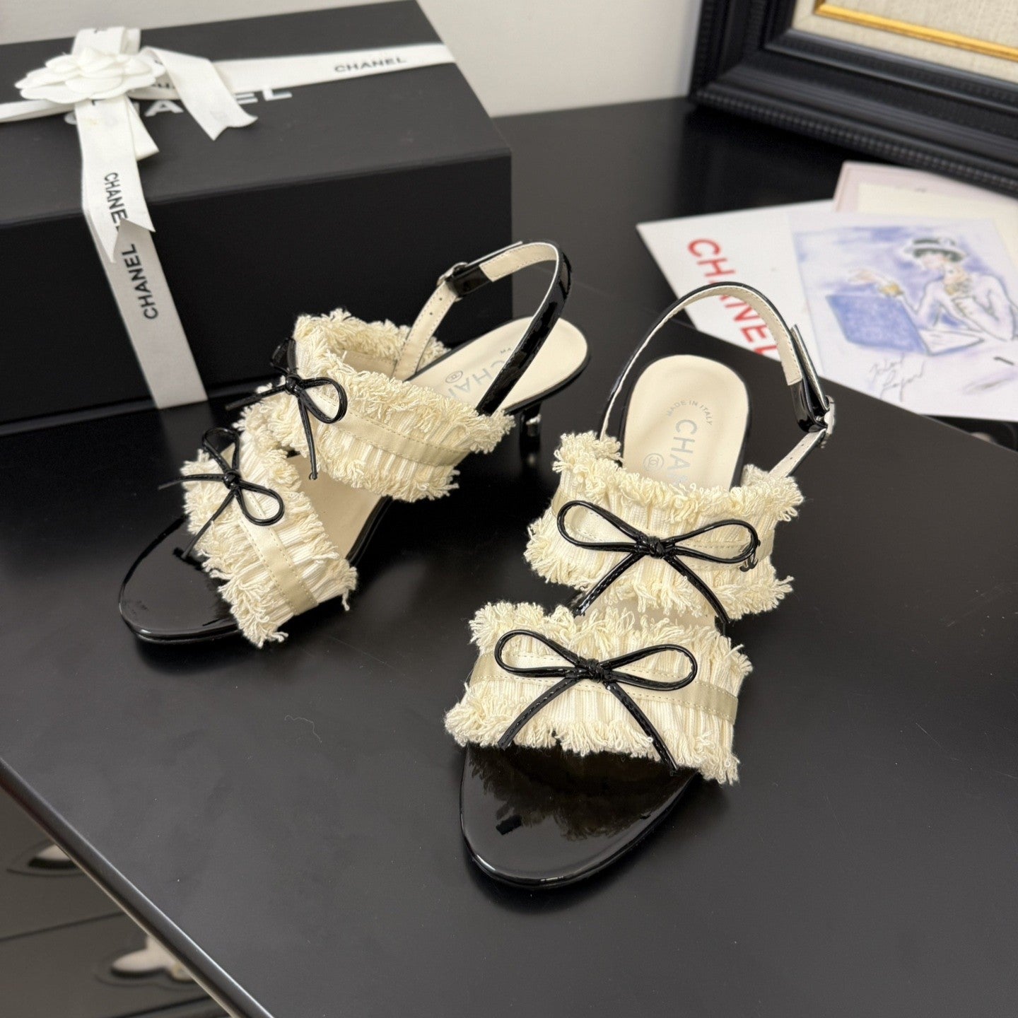 CC 25C 10CM Mid Heed Sandals White Fabric 213325