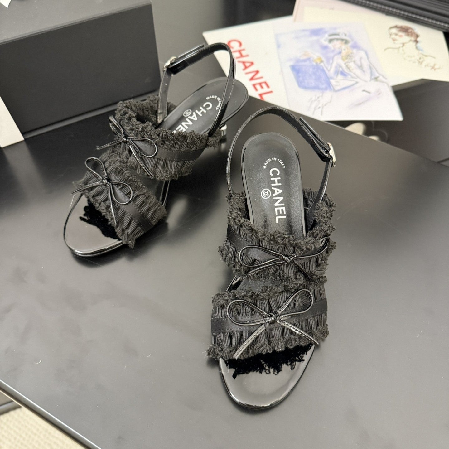 CC 25C 10CM Mid Heed Sandals Black Fabric 213324
