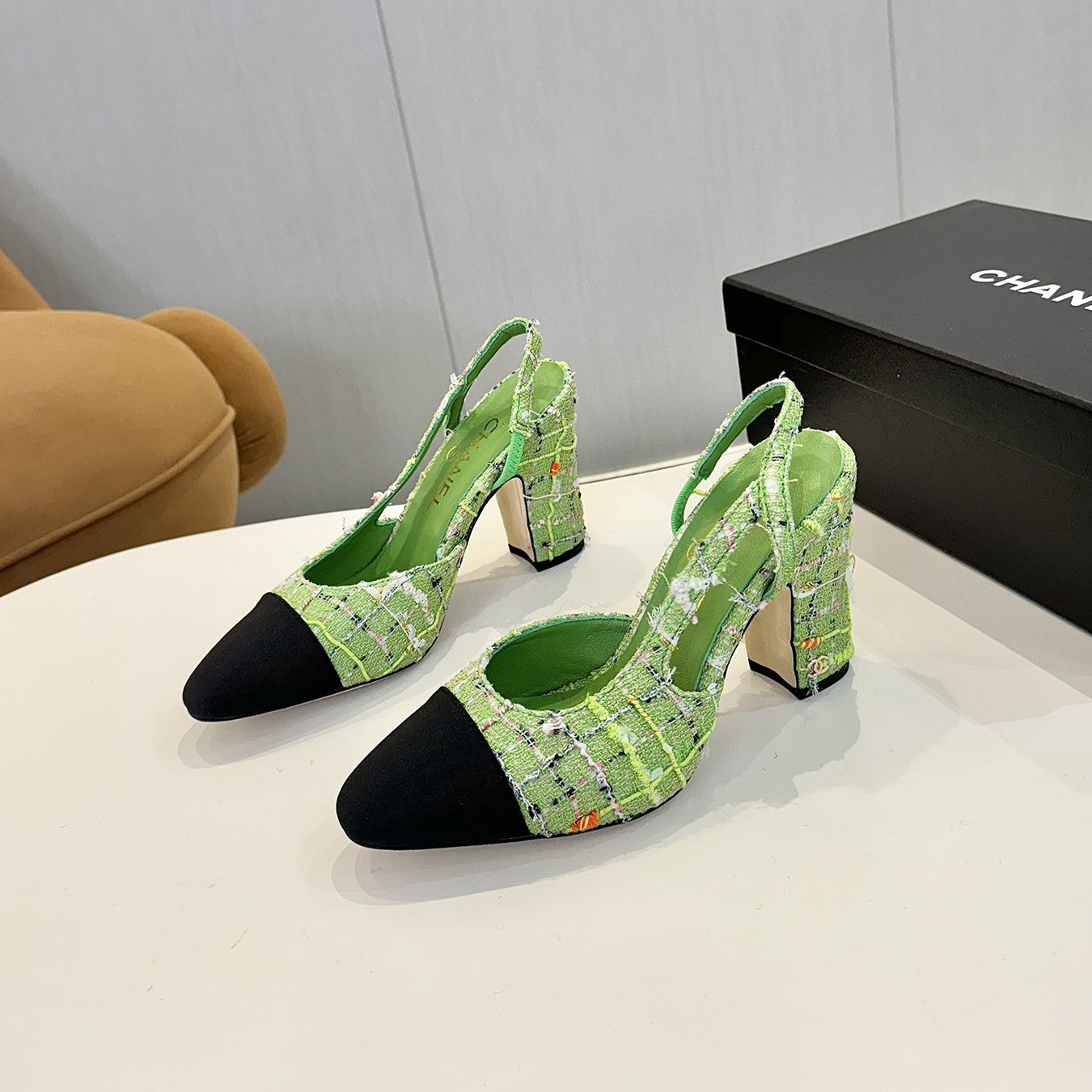 cc 25c slingback 65 green tweed black grosgrain 233615